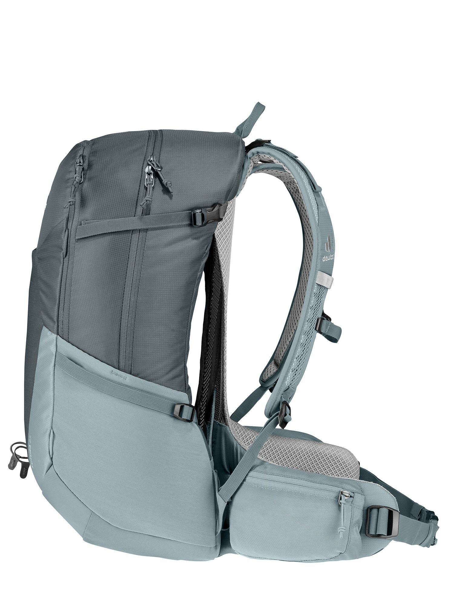 - Deuter Futura 27 сшит из прочных и устойчивых к износу материалов. Полиамид 210D* на 50% состоит из переработанных материалов и сертифицирован bluesign. Полиэстер 600D* - прочная на разрыв и лёгкая ткань с толстым полиуретановым покрытием (PU). Когда речь идёт о минимальном весе рюкзака при умеренной нагрузке, полиэстер 600D является идеальным решением.