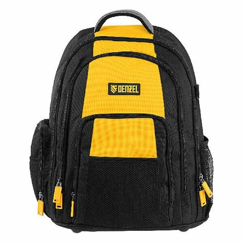 Рюкзак Denzel 90296 размером 365 х 190 х 430 мм, с 3 отделениями и 26 карманами (в том числе сетчатыми), предназначен для размещения и транспортировки ручного инструмента. 3 секции позволяют организовать упорядоченное хранение всех необходимых предметов. Рюкзак пригодится выездному мастеру.