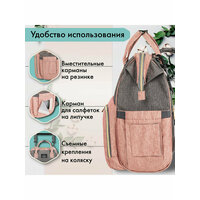 Купить Рюкзак для мамы Brauberg Mommy с ковриком, крепления на коляску, термокарманы, серый/розовый, 40x26x17 см, 270821 с доставкой по всей России.
