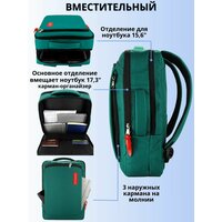 Рюкзак Optimum 17.3 RL, зеленый - это яркий стильный рюкзак - сумка для ноутбука, нетбука, компьютера, планшета. Рюкзак для ноутбука универсальный – его можно использовать как рюкзак для ноутбука 15.6 дюймов, так и рюкзак для ноутбука 17.3 дюйма. Совместим со всеми марками ноутбуков DELL HP Samsung Apple MacBook Acer Asus Lenovo Honor Xiaomi Msi Irbis Digma с размерами экрана 15 15.6 16 17 17.3 дюйма. Подходит для макбука, ультрабука. Есть специальный карман для документов формата A4 и аксессуаров. Компактный (объемом 12.5 литров), облегченный, надежный, эргономичной формы рюкзак для офиса, работы, учебы, путешествий и деловых поездок. Optimum 17.3 RL - это рюкзак унисекс - рюкзак для ноутбука женский, так и рюкзак для ноутбука мужской. На задней стенке ремень - крепление на ручку чемодану. Две широкие мягкие регулируемые лямки обеспечат комфорт в дороге. Лямки можно отстегнуть и спрятать в карман, а 2 удобные мягкие ручки сверху и сбоку позволят использовать изделие как деловую бизнес сумку. Рюкзак выполнен из качественной, износостойкой, высокопрочной ткани с водоотталкивающей пропиткой. Специальное отделение - отсек для ноутбука с подкладкой из неопрена, надежно защитит гаджет от ударов. 3 наружных кармана для аксессуаров, powerbank, ключей, очков. Рюкзак женский для ноутбука - стильный, яркий, модный. Рюкзак мужской для ноутбука – деловой рюкзак для города и командировок. Рюкзак для ноутбука 16 можно использовать для небольших путешествий, перелетов и прогулок по городу, для удобного и безопасного перемещения ноутбука. Рюкзак пригодится для работы фрилансеров, для учебы студентам, подросткам, мальчикам, девочкам. Отличный подарок на день рождения другу, подруге, коллеге.