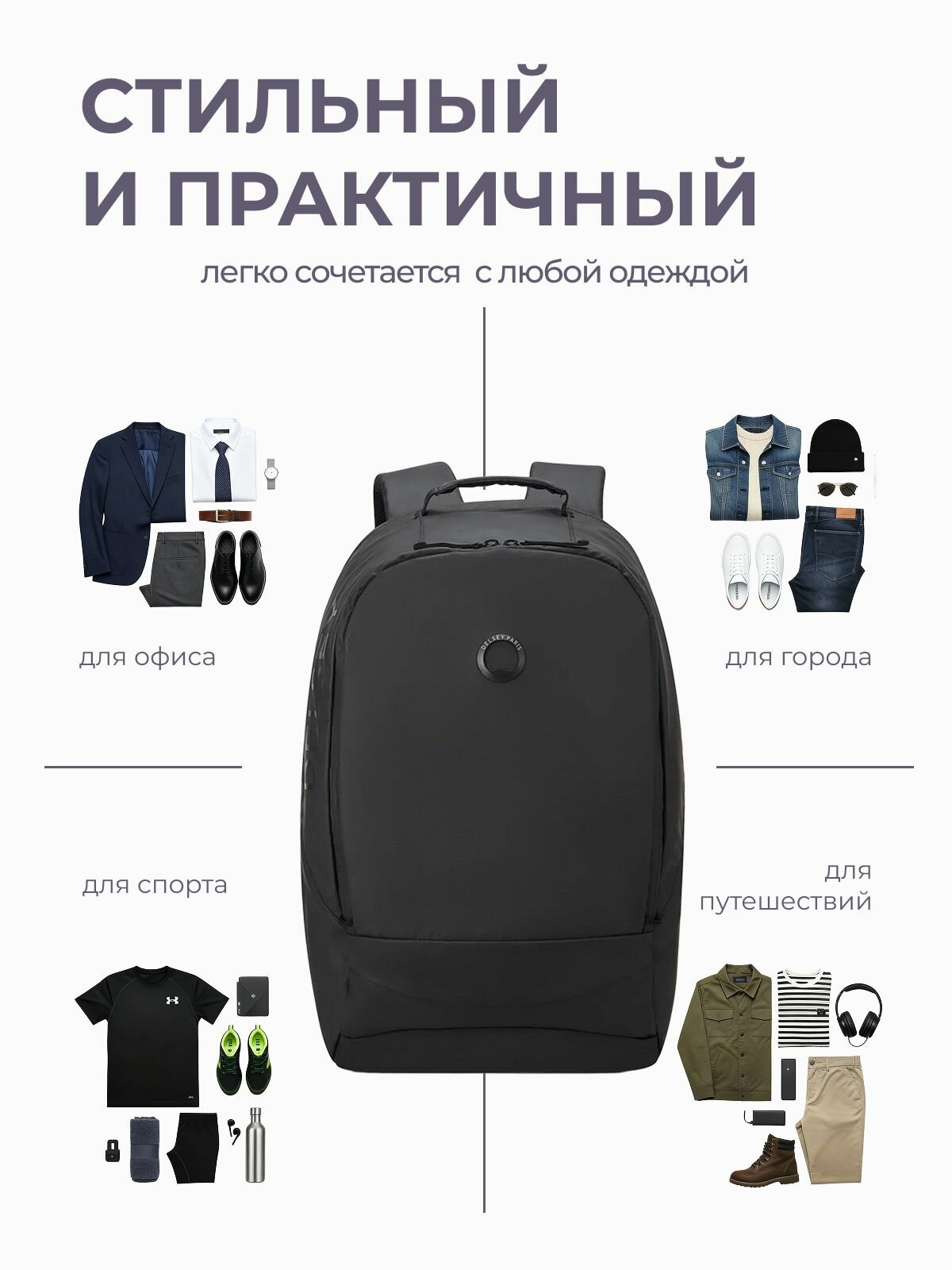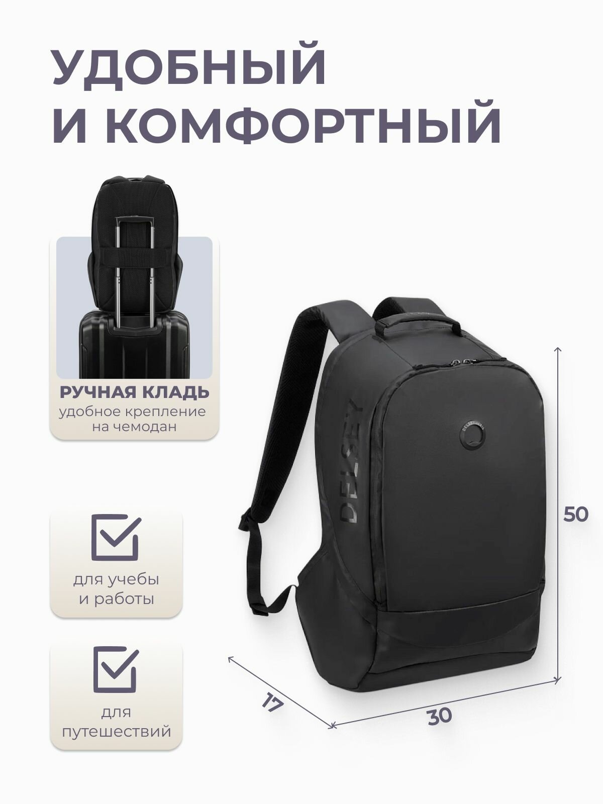 Наш большой рюкзак изготовлен из материала под названием rPET — пластика, полученного из 8 полностью переработанных бутылок из-под воды. Начните путешествовать более экологичным и безвредным для окружающей среды способом уже сегодня с EGOA. Ваш рюкзак EGOA имеет умную надежную систему крепления! Все, что вам нужно сделать, это сдвинуть молнию вниз до дна сумки, за боковым карманом, чтобы скрыть ее из виду. Защитите свои вещи в ежедневных поездках благодаря дизайну рюкзака! Две молнии по бокам открываются до самого низа, обеспечивая доступ к основному отделению. Внутри отделения есть два усиленных мягких кармана, предназначенных для ноутбука с диагональю экрана 15,6 дюйма и планшета. Большое оставшееся пространство позволяет хранить все необходимое. Кроме того, 3 внешних кармана позволяют хранить и мгновенно получать доступ к вашим личным вещам! Этот рюкзак имеет встроенный карман с защитой от RFID (радиочастотной идентификации), предназначенный для предотвращения кражи ваших личных электронных данных. Идеальное место для хранения телефона и дебетовых/кредитных карт! Ремни и задняя часть рюкзака изготовлены из 3D-сетчатой пены, обеспечивающей оптимальный комфорт и предотвращающей накопление пота. На задней части рюкзака есть рукав, позволяющий соединить его с ваши багажом.