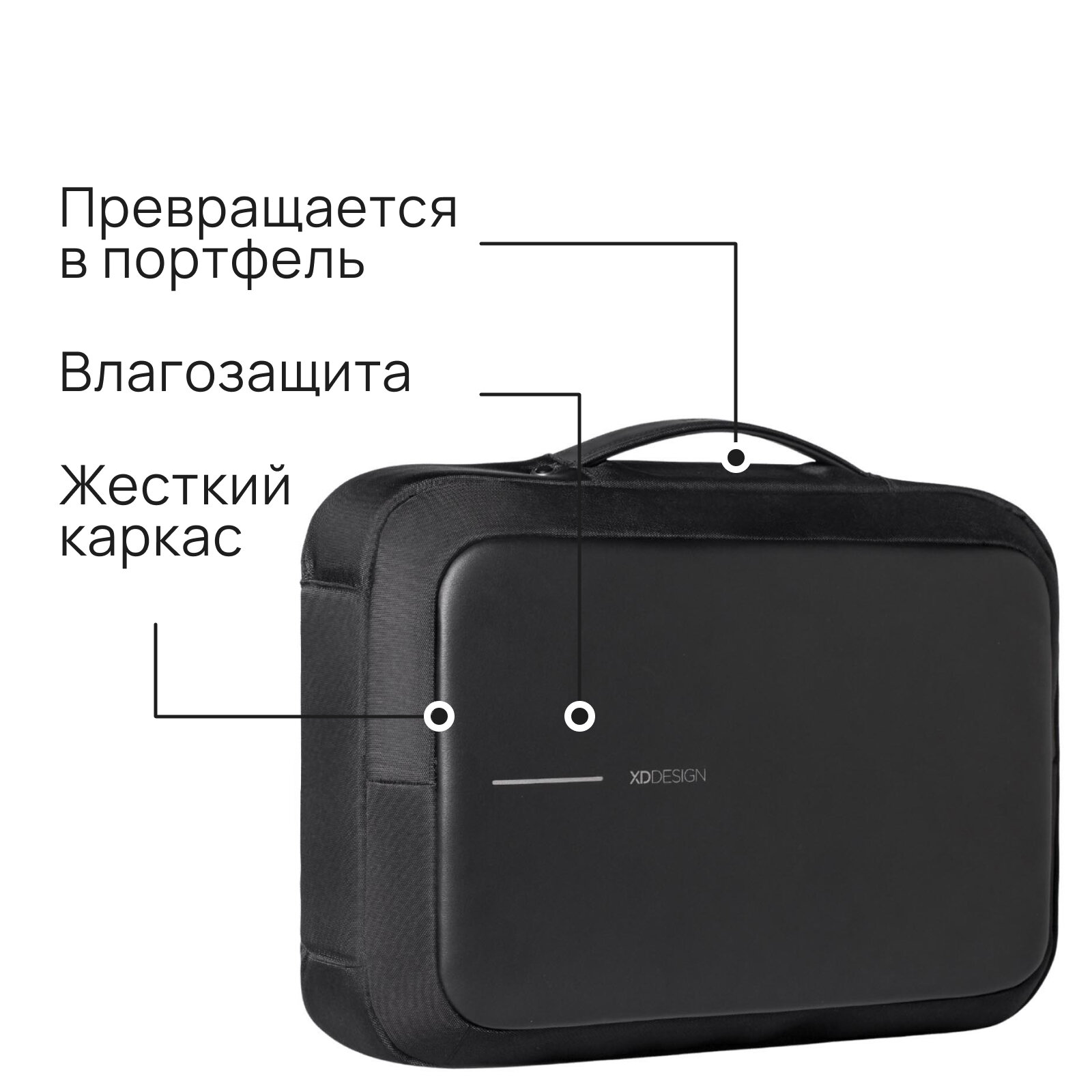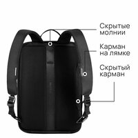 Деловой рюкзак, который трансформируется в портфель. Для ноутбука до 16”, планшета и документов. Объем 14 литров. Непрорезаемая ткань, защита от влаги и грязи. Скрытые карманы для карт и смартфона. Металлический каркас для защиты техники.