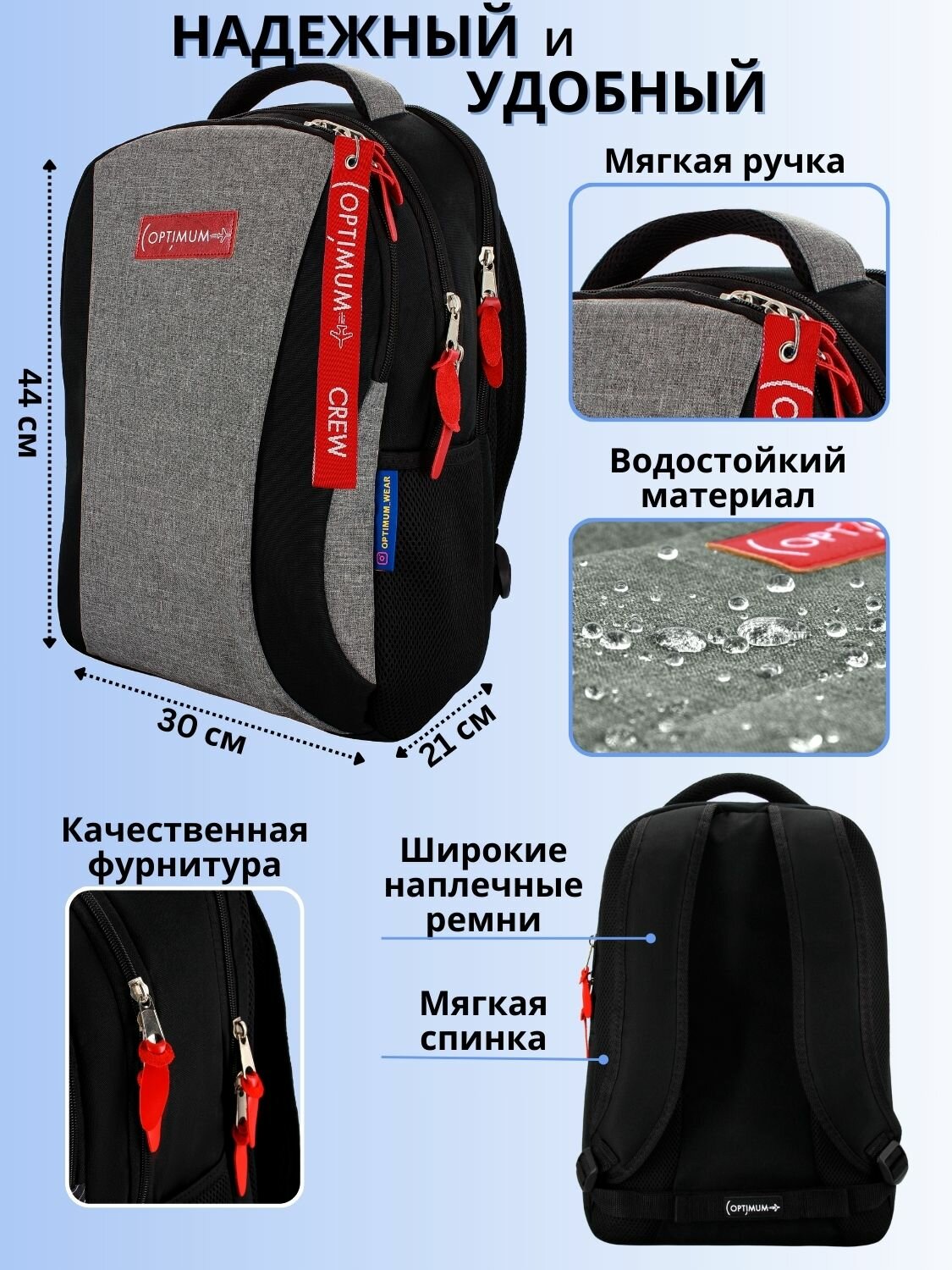 Стильный современный дизайн рюкзака подойдет для мужчин и женщин разного возраста.
