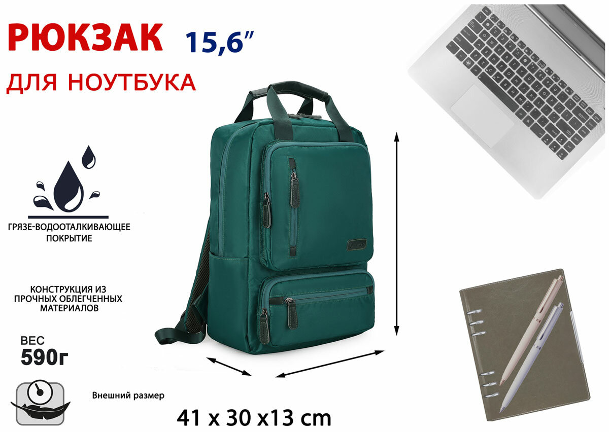 - Стильный многофункциональный рюкзак из водоотталкивающей ткани - Выполнен из облегченных современных надежных материалов - Усиленные двойным слоем микропоры стенки и дно рюкзака обеспечат сохранность ноутбука и принадлежностей от внешних воздействий при пользовании - Четыре передних отделения на молнии для хранения различных аксессуаров: ключи, наушники, мышь, смартфон, зарядные устройства и иные устройства - Основное просторное отделение с двойными застежками молниями для удобного доступа - Дополнительные отделения с фиксатором для ноутбука и планшета до 10.1"/документов формата А4 - Удобная панель-органайзер для хранения письменных принадлежностей, паспорта, смартфона, визитных карт и других принадлежностей - Ремешок с карабином для ключей - Боковые карманы с фиксатором для зонта/бутылки - Удобные стильные ручки для надежной транспортировки в руках - Дополнительная петля для размещения на крючке - Регулируемые наплечные ремни с мягкой вентилируемой накладкой для ежедневных и длительных путешествий - Нет висящих лямок! Новая система регулировки плечевых ремней с фиксируемым блоком - Водонепроницаемая ткань - Металлическая с мягкими вставками фурнитура
