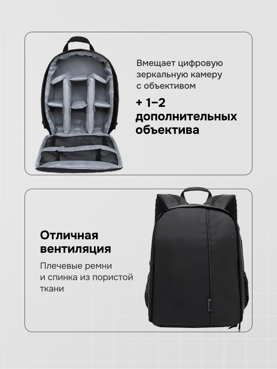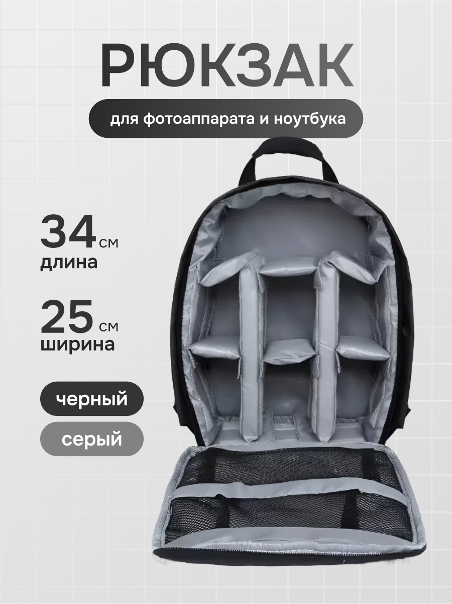 Рюкзак для зеркального фотоаппарата и ноутбука серый с регулируемыми перегородками: сравнение цен, характеристики, фото, актуальное наличие и цены.
