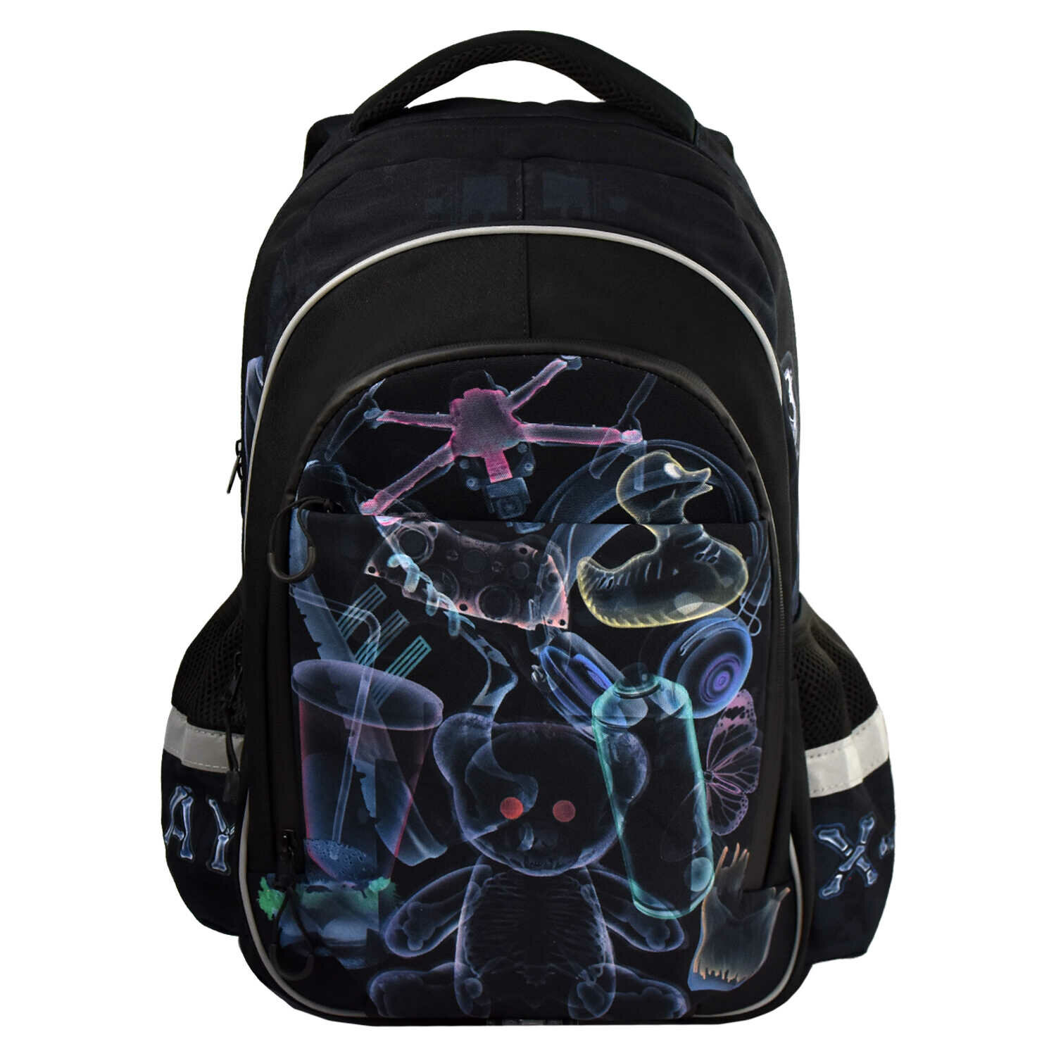 Купить Рюкзак школьный Феникс+, арт. 64153, полиэстер, водоотталкивающий, чёрный, 31x44x16 см с доставкой по всей России.