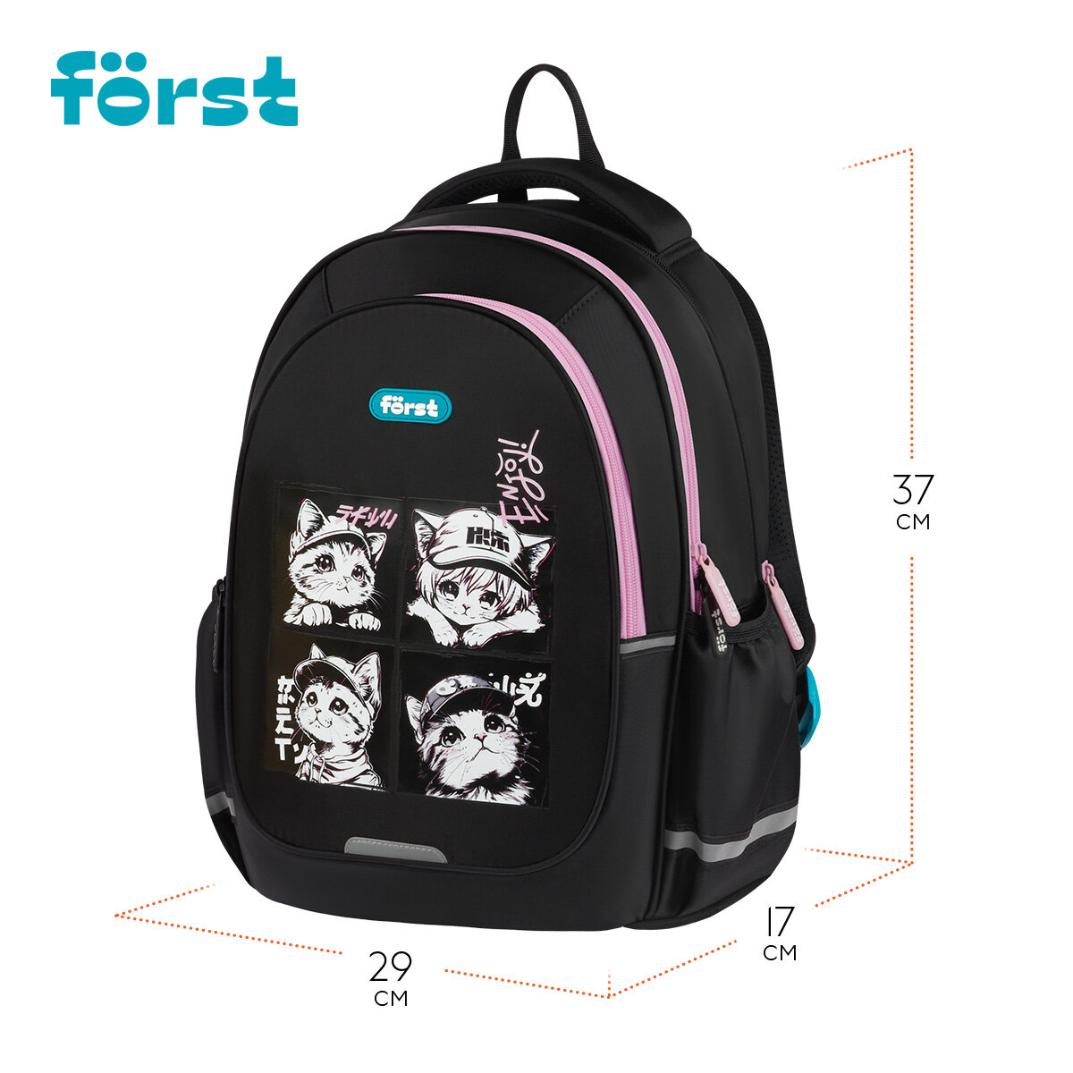 Купить Рюкзак Först F-Cute «Lovely Kittens» 37*29*17см, 3 отделения, 2 кармана, анатомическая спинка с доставкой по всей России.