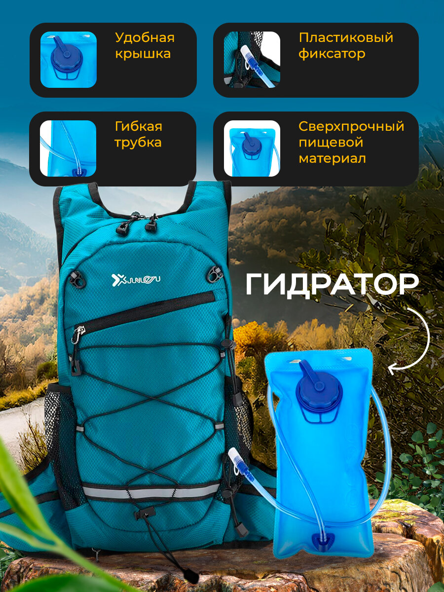 "Рюкзак-гидратор Junletu 16L с питьевой системой 2L представляет собой практичный и удобный заплечный ранец, оснащенный вместительным сосудом для воды или другой жидкости, утоляющей жажду. Сумка с гидратацией (питьевая система) позволяет не отвлекаться в процессе физических упражнений и сохранять высокую активность на протяжении всей тренировки. Рюкзак для питья воды оптимально подойдет для спортсмена, специализирующегося на марафонах, лыжном беге, биатлоне и других зимних видах состязаний. Заплечный ранец с питьевой системой станет незаменимым помощником для туриста, привыкшего большую часть времени проводить в условиях открытого воздуха. Походный рюкзак гидратор с водой предусматривает два внутренних вместительных отсека, а также боковой и передний карман в виде сетки.