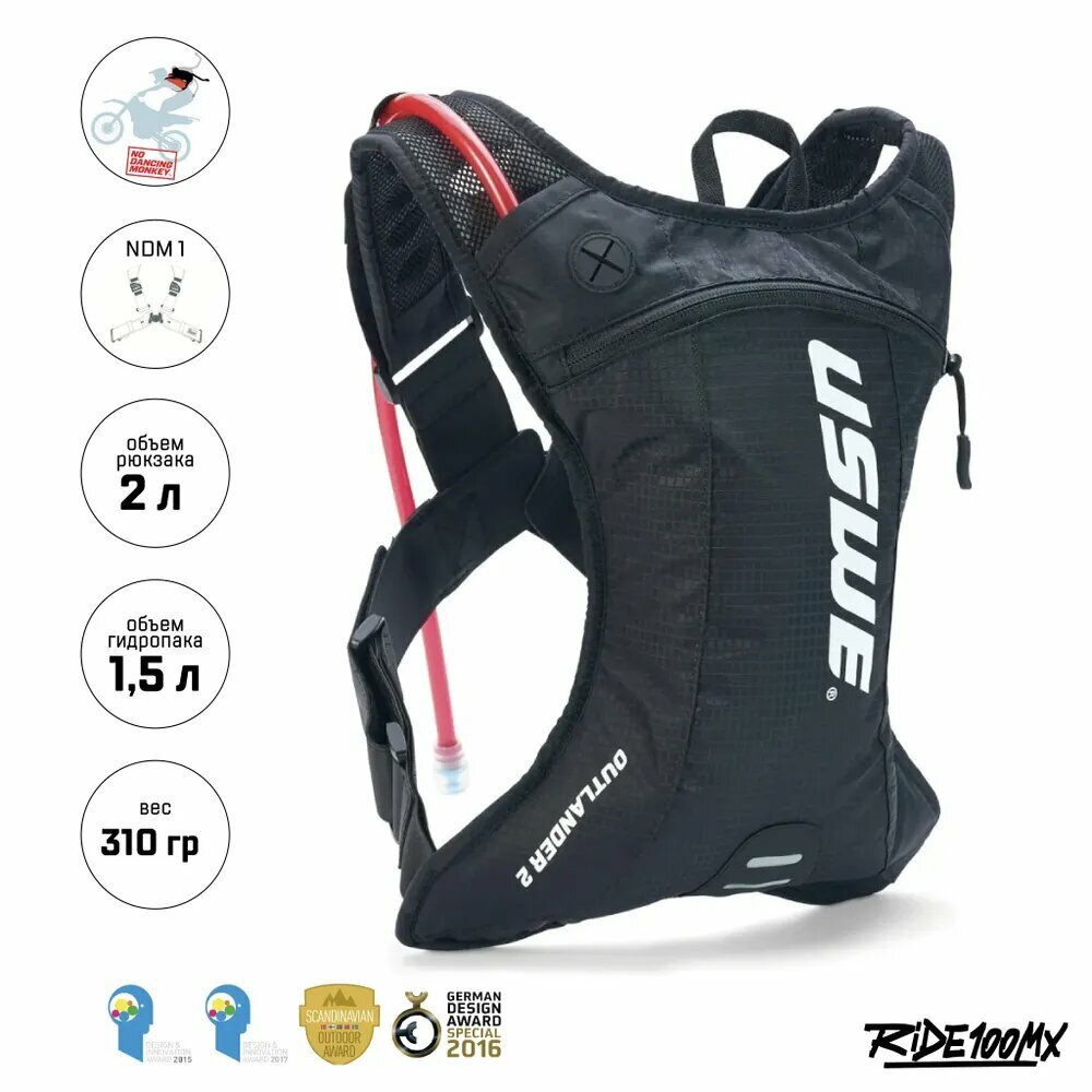 Купить Рюкзак-гидропак USWE OUTLANDER 2L Hydration Pack (1.5L), Carbon Black с доставкой по всей России.