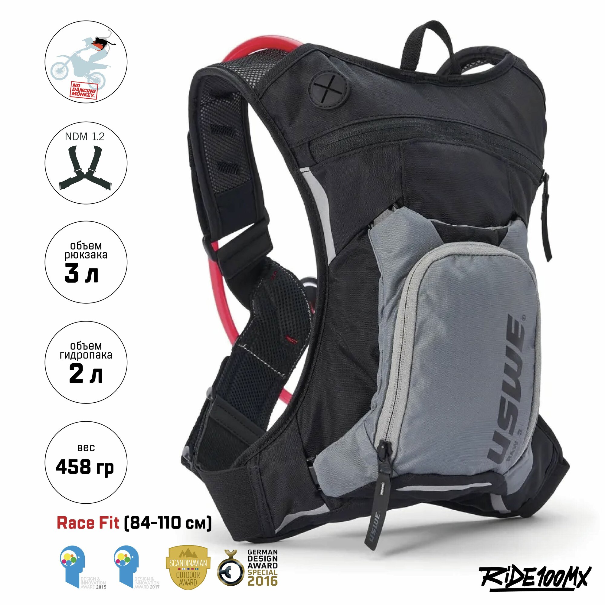 Купить Рюкзак-гидропак USWE RAW 3L Hydration Pack (2L), Carbon Black, Race Fit (S-XL / 84-110) с доставкой по всей России.