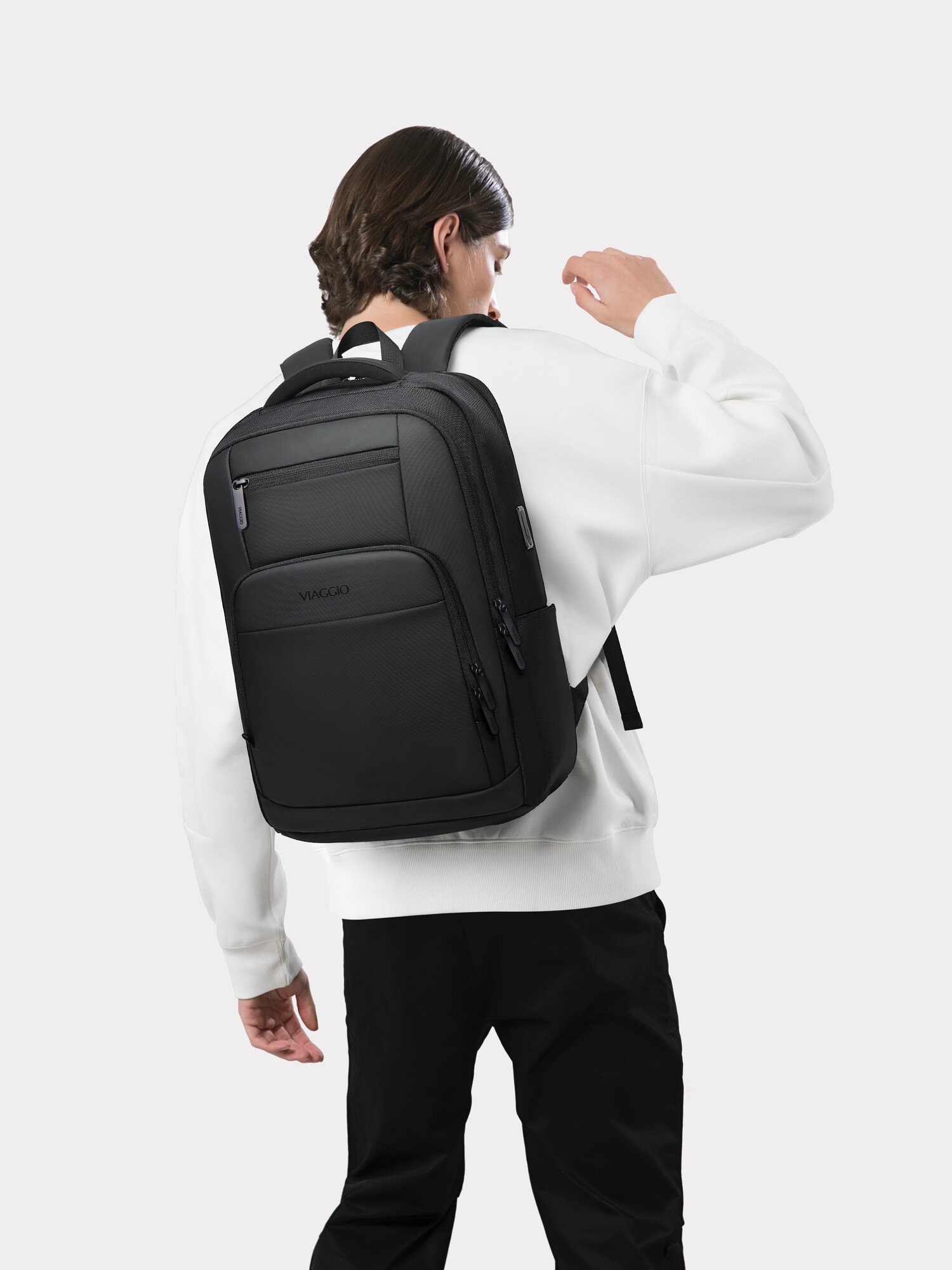 Рюкзак VIAGGIO сочетает в себе все преимущества универсальности. Модный лаконичный дизайн подчеркнет ваш стиль в городе. Вместительность объемом 22 литра и легкость - это то, что так необходимо для путешествий, к тому же эта модель рюкзака прекрасно подходит для ручной клади. Кроме того, это прекрасный выбор для спортзала и школы, ведь наличие большого количества отделений и карманов обеспечит вам максимальный комфорт от использования. Рюкзак VIAGGIO выполнен из плотного премиального материала Oxford с водоотталкивающими свойствами - вода скатывается, не успевая впитаться. Используется качественная фурнитура от японского брэнда YKK, которая отличается эталоной надёжностью. Рюкзак имеет два отделения, каждое из которых оснащено двойными застежками для удобного доступа. Отсек для ноутбука вмещает гаджеты размером до 17.3 дюймов и имеет мягкий слой для их защиты. Основное отделение оснащено двойным USB портом, а также карманом для хранения повербанка. Дополнительное отделение имеет два внутренних кармана: карман-сетка на молнии и накладной. В верхней части этого отделения расположилось удобное кольцо для ключей. На фронтальной части рюкзака есть два кармана для на молнии. Карман большего размера выполнен из водонепроницаемого материала и имеет двойную застежку для вашего удобства. Если вы любите путешествовать, то вы непременно оцените багажную ленту для крепления на чемодан и потайной карман на молнии в спинке рюкзака. Рюкзак имеет вентилируемые мягкие спинку и лямки для максимального комфорта в летнее время. На одной из лямок имеется петля для очков, на другой – карман для транспортной или банковской карты.