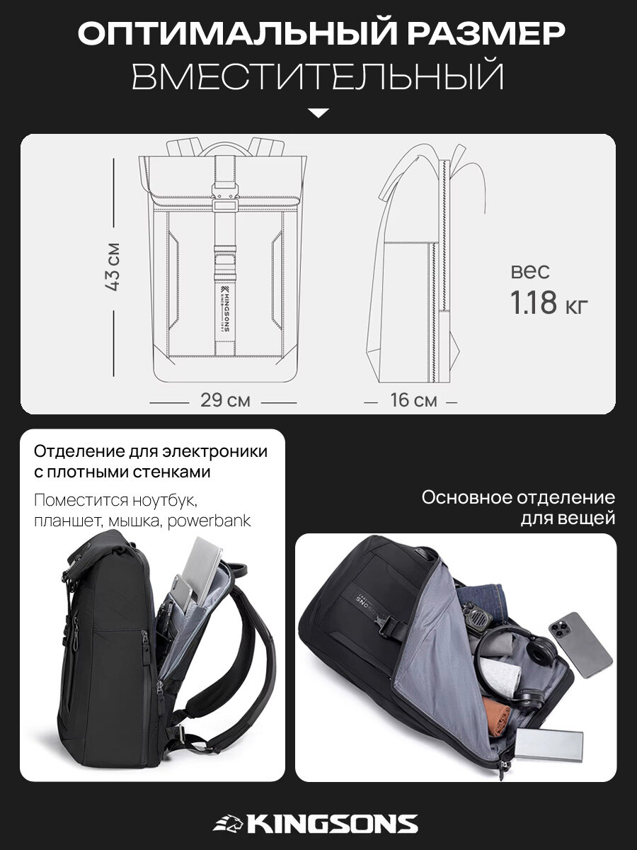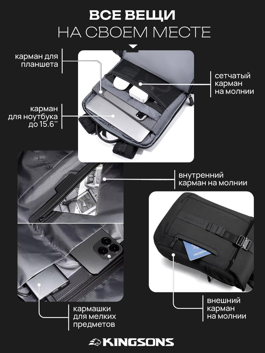 | Конструктивные особенности | USB-выход, антивор, боковые карманы, вентилируемые лямки, вентиляция спины, верхний карман, внутренний карман, две лямки, мягкий, нагрудный ремень, отверстие для наушников, ремешок крепления ноутбука, ручка сверху, светоотражающие элементы, фронтальный карман, эргономичная спинка, эргономичные лямки |
