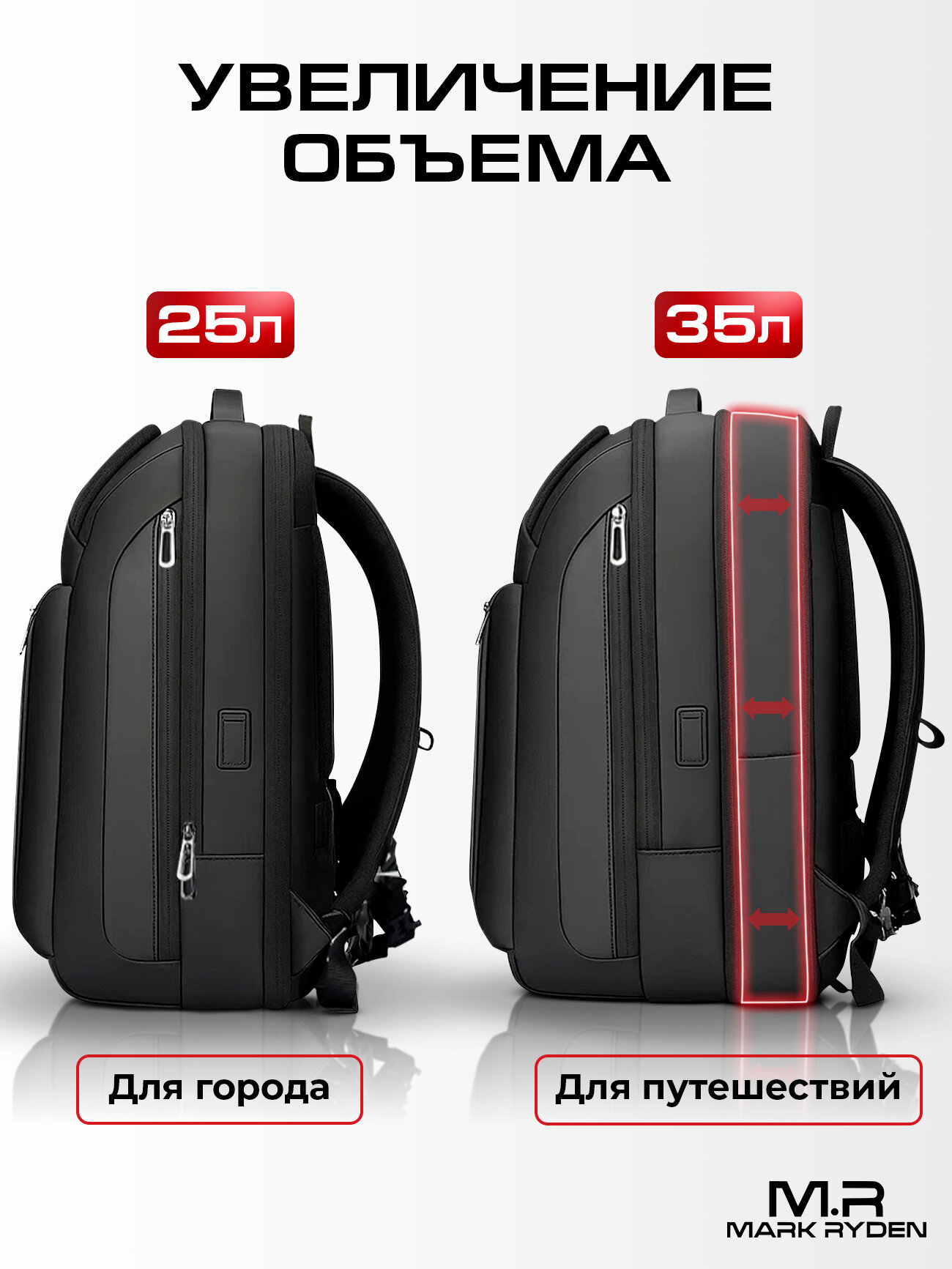 Рюкзак ручная кладь с увеличением объема 25-35 л Mark Ryden G1_MR9808_00, для ноутбука 15,6″ дорожный для путешествий: сравнение цен, характеристики, фото, актуальное наличие и цены.