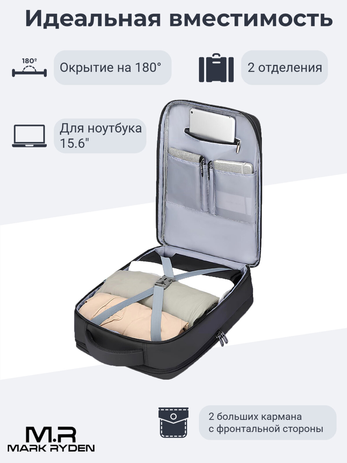 Для удобства в путешествиях предусмотрено крепление на багаж, позволяющее легко закрепить рюкзак на ручке чемодана. Mark Ryden – это идеальное сочетание практичности, стиля и комфорта, которое поможет вам оставаться организованным и уверенным в себе в любой ситуации.