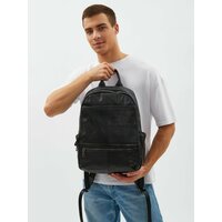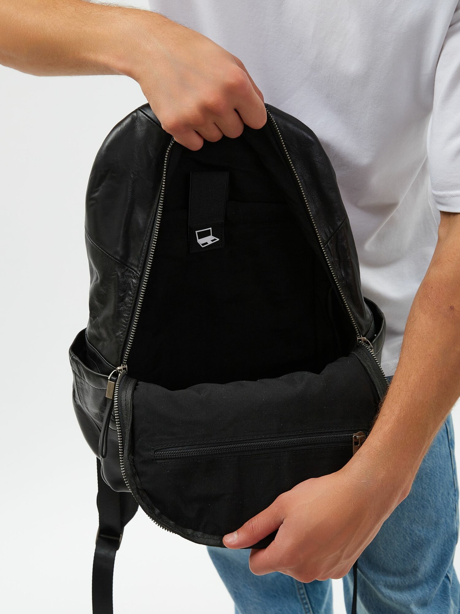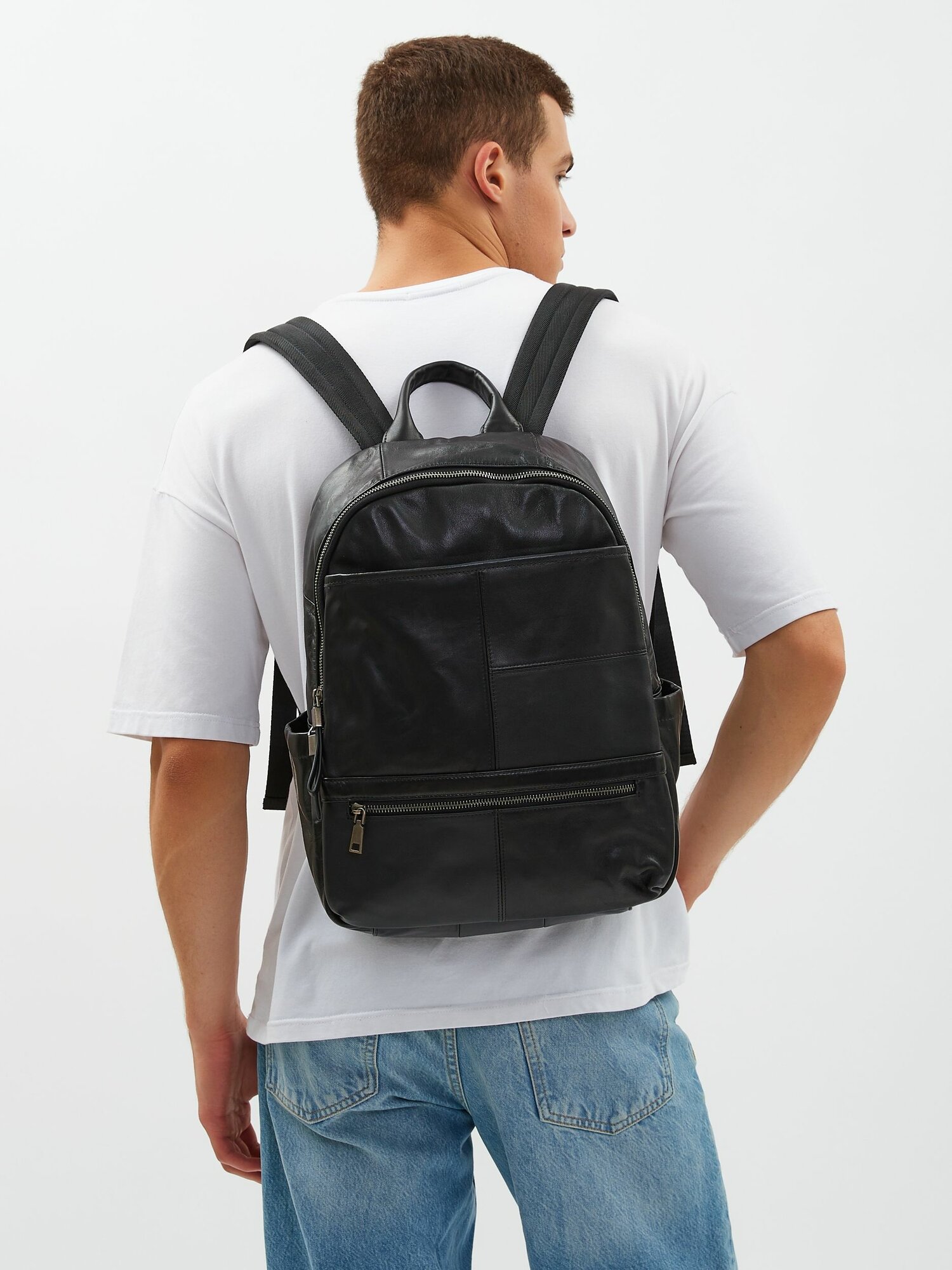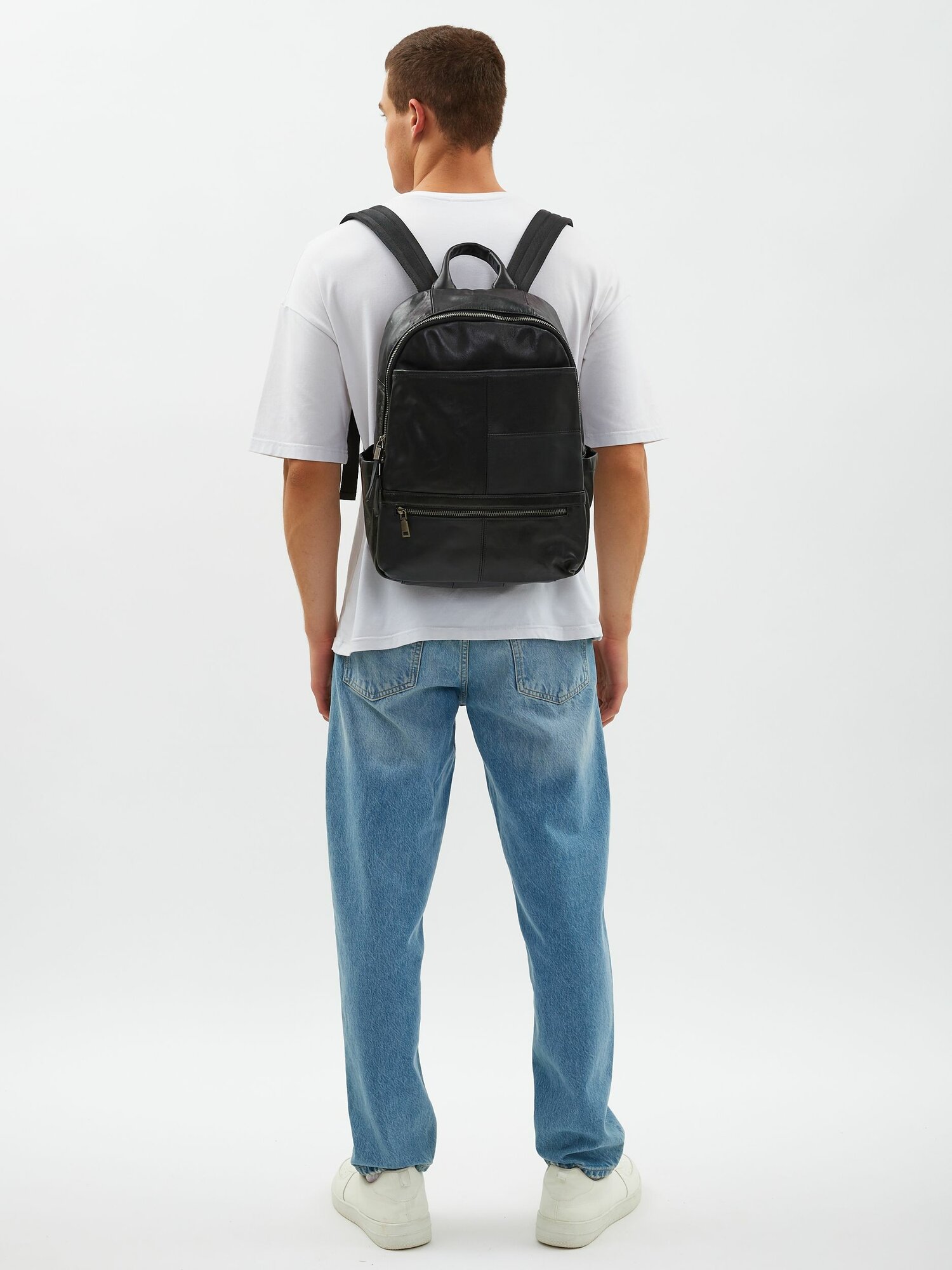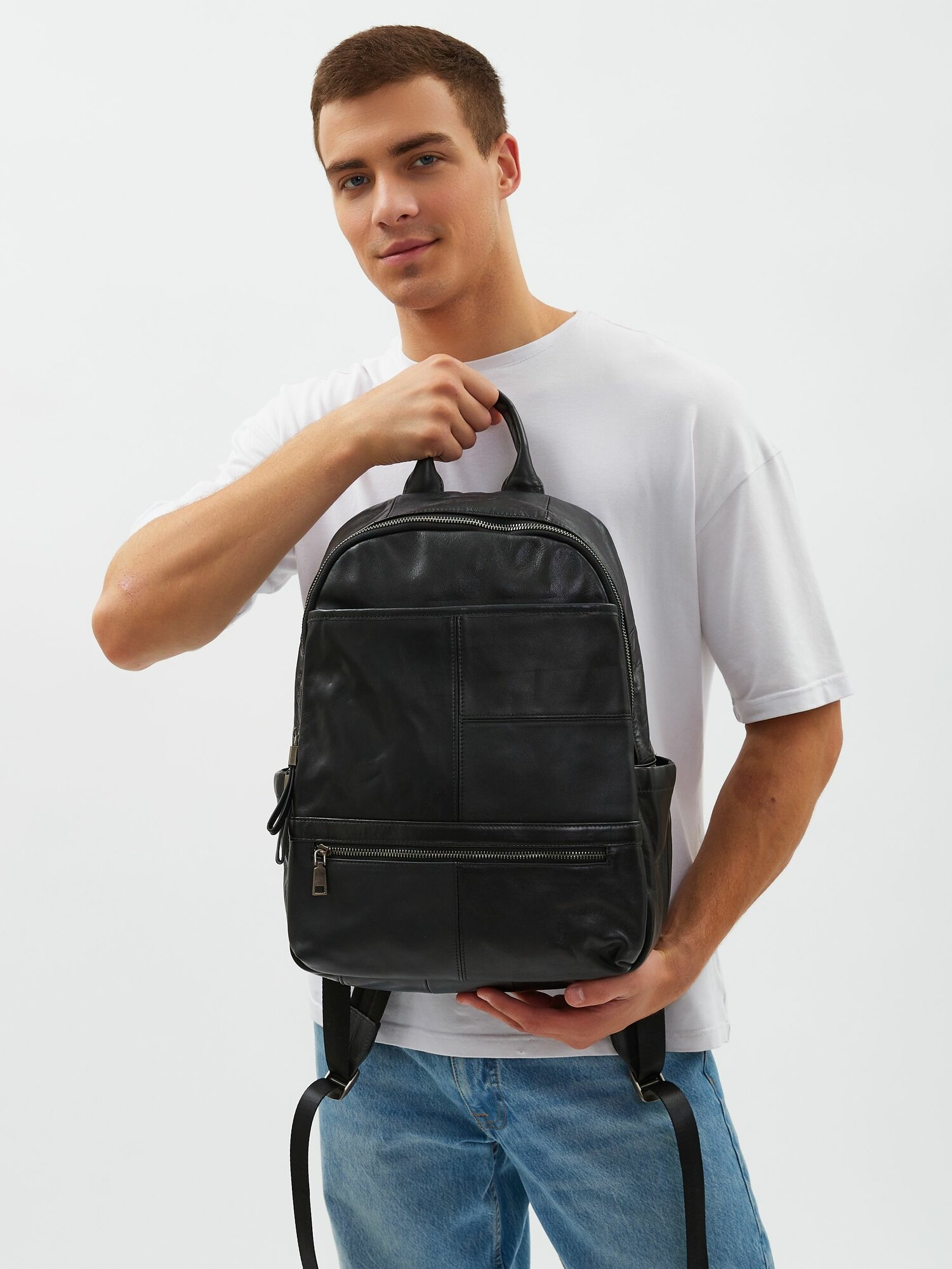 Мужской рюкзак в классическом черном цвете изготовлен из натуральной кожи высокого качества. Кожа крупного рогатого скота высшего сорта отличается плотностью, упругостью и прочностью.