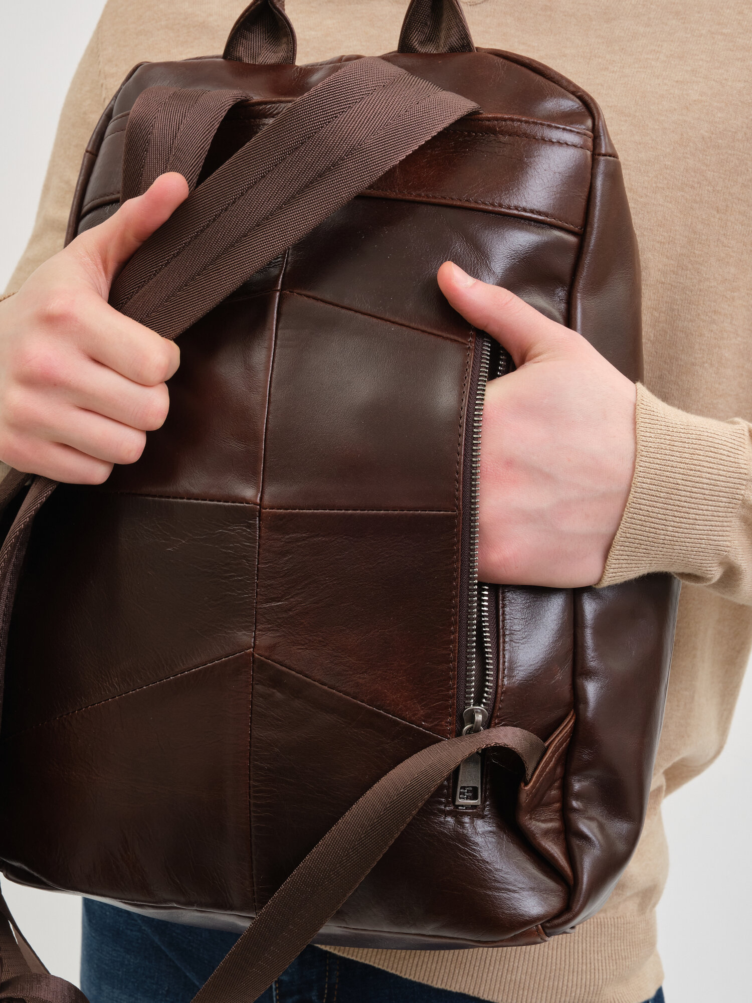 - места крепления лямок рюкзака выполнены из натуральной кожи;