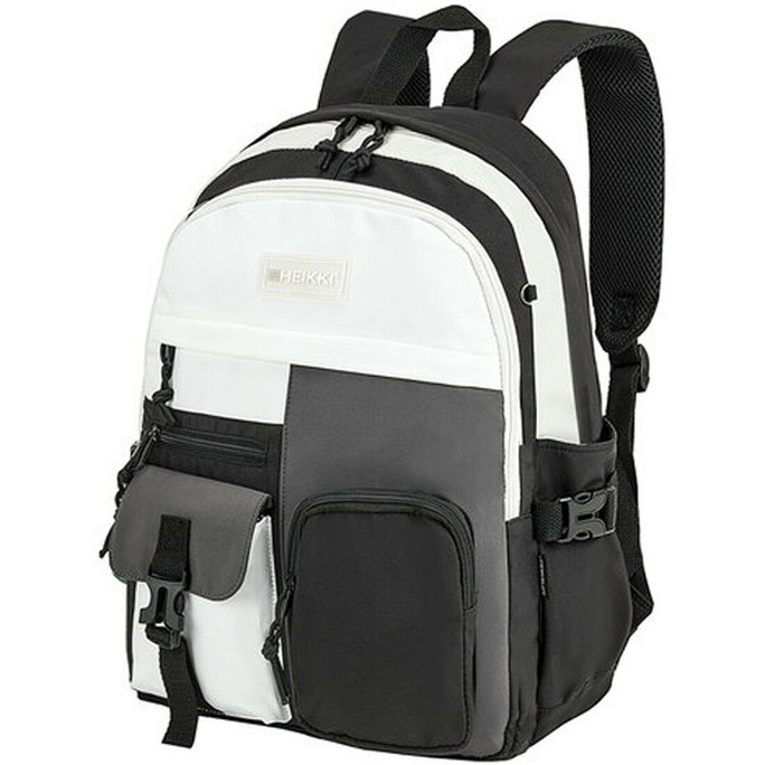 Рюкзак HEIKKI BLOCKS (хейки) универсальный, 2 отделения, черный/серый/белый, 44х32х17 см, 272563
