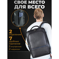 Внутреннее пространство рюкзака разделено на два отделения, чтобы обеспечить максимальную функциональность и удобство использования. В первом отделении найдется место для различных гаджетов, кошелька, сменного комплекта одежды, документов формата А4 и другие необходимых в дороге личных вещей. Для мелких предметов и ценных вещей в нем предусмотрены карманы: 4 открытых и 1 на молнии. Ближе к спинке расположено специальное отделение с уплотненными стенками для безопасной переноски 15.6 дюймового ноутбука.