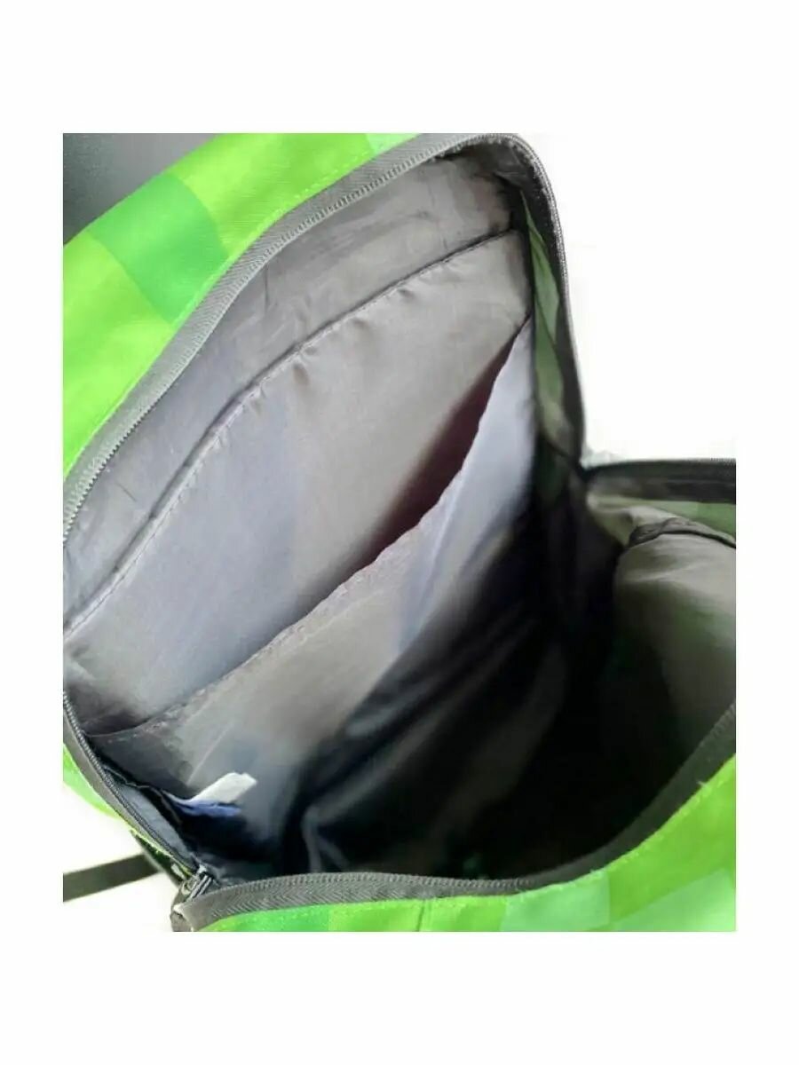 Ярко-зеленый красивый рюкзак в стиле Майнкрафт с принтом в виде пиксельного крипера. У оригинального рюкзака уникальный дизайн лямок - на которых на текстиле изображены факел и компас. Лямки и спинка мягкие из вентилируемой ткани, с вышивкой в виде пикселей. В основном отделении есть объемный карман, закрывается отделение на молнию с двумя текстильными бегунками. Внешний карман также закрывается на молнию с бегунками, в нем также имеются маленькие удобные кармашки. Прекрасно подойдет для хранения всякой мелочи. Есть 2 боковых кармашка, в котором удобно носить бутылку воды. Рюкзак идеально подойдет для школы или для дополнительный занятий, для детей всех возрастов.