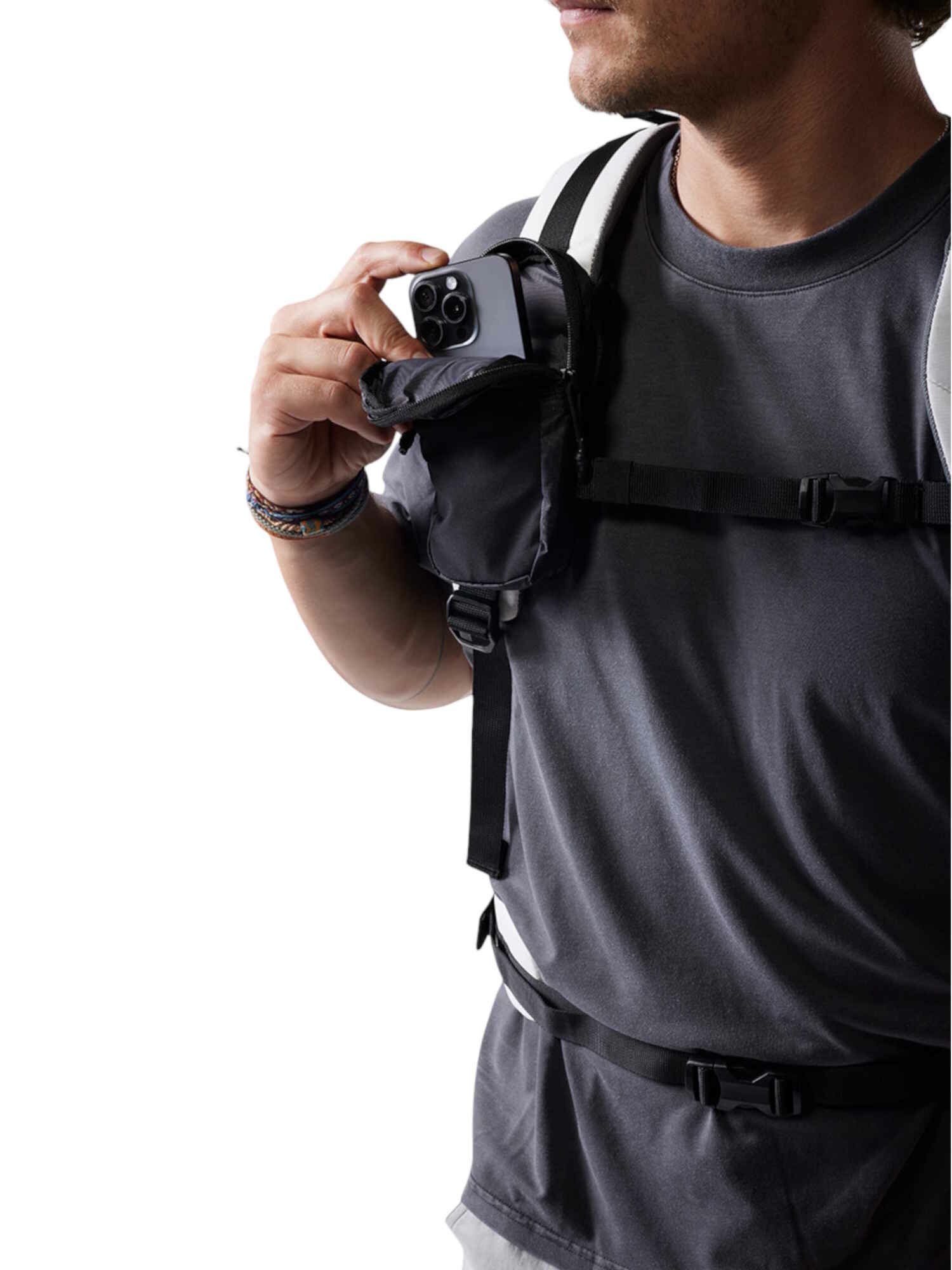 Чехол-сумка для мобильного телефона, кошелька, туристических принадлежностей. Универсальный дизайн для всех видов рюкзаков с нагрудным ремнем. Инновационные липучки предотвращают скольжение чехла. Изготовлен из водонепроницаемого нейлона Bluesign. Наружный карман Monomesh. Молнии YKK. Двойная застёжка на молнии позволяет использовать на правом или левом плечевом ремне. Размер 17.78 x 6.99 x 5.08 сm. Вес 76 гр. Гарантия 1 год.