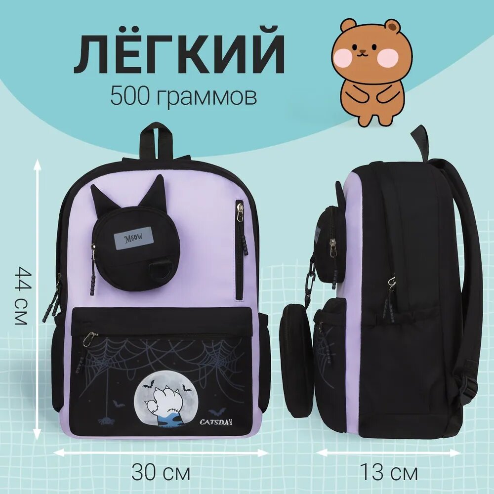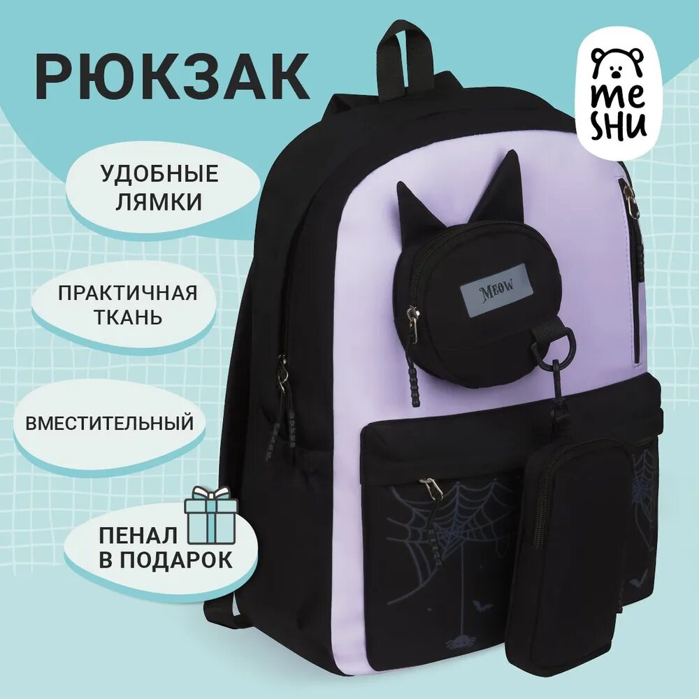 Купить Рюкзак MESHU «Black cat», 44*30*13см, 1 отделение, 5 карманов, уплотненная спинка, в комплекте пенал 15*10см с доставкой по всей России.