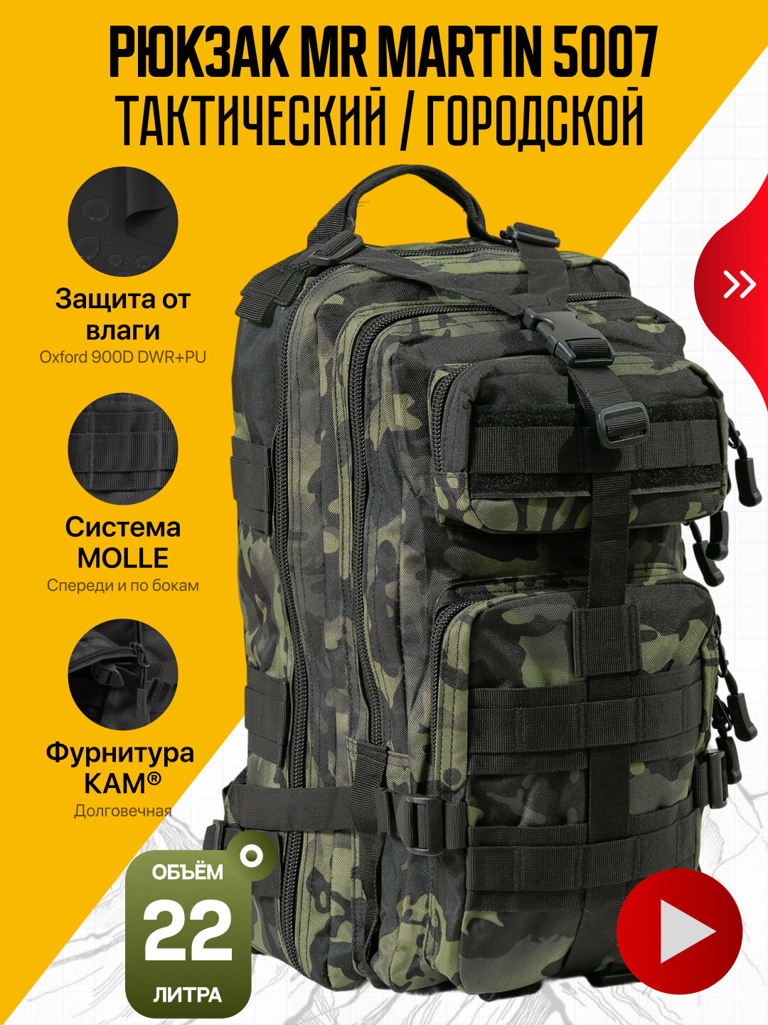 Mr. Martin 5007 — универсальный тактический рюкзак объемом 22 литра. Благодаря компактным размерам и прочным материалам, он идеально подходит для городского использования, активного отдыха, страйкбола, охоты и рыбалки.