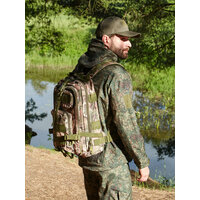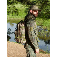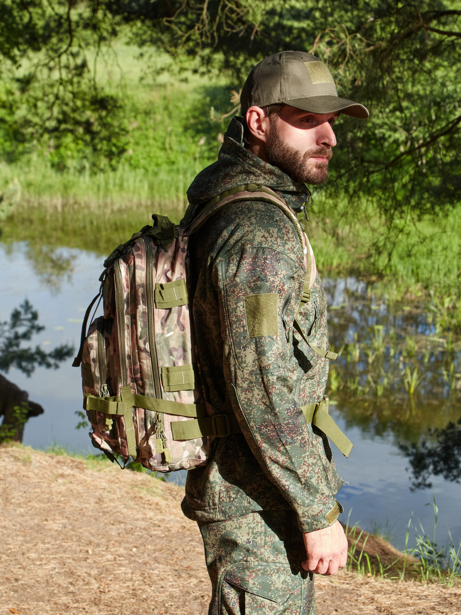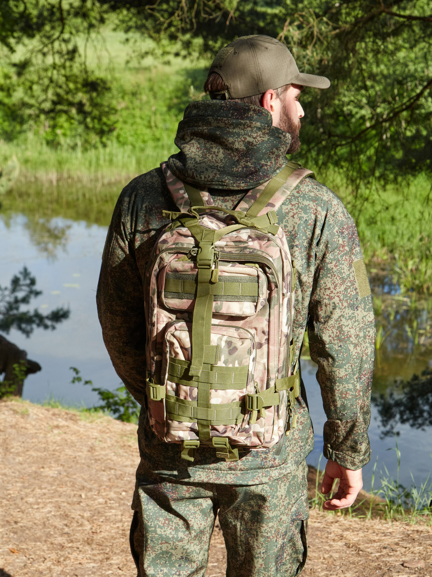 Рюкзак выполнен из комбинации материалов, включая кордуру, полиэстер, брезент, рипстоп и пластик. Это обеспечивает высокую прочность и долговечность изделия, а также позволяет сохранять его форму даже при максимальной нагрузке.