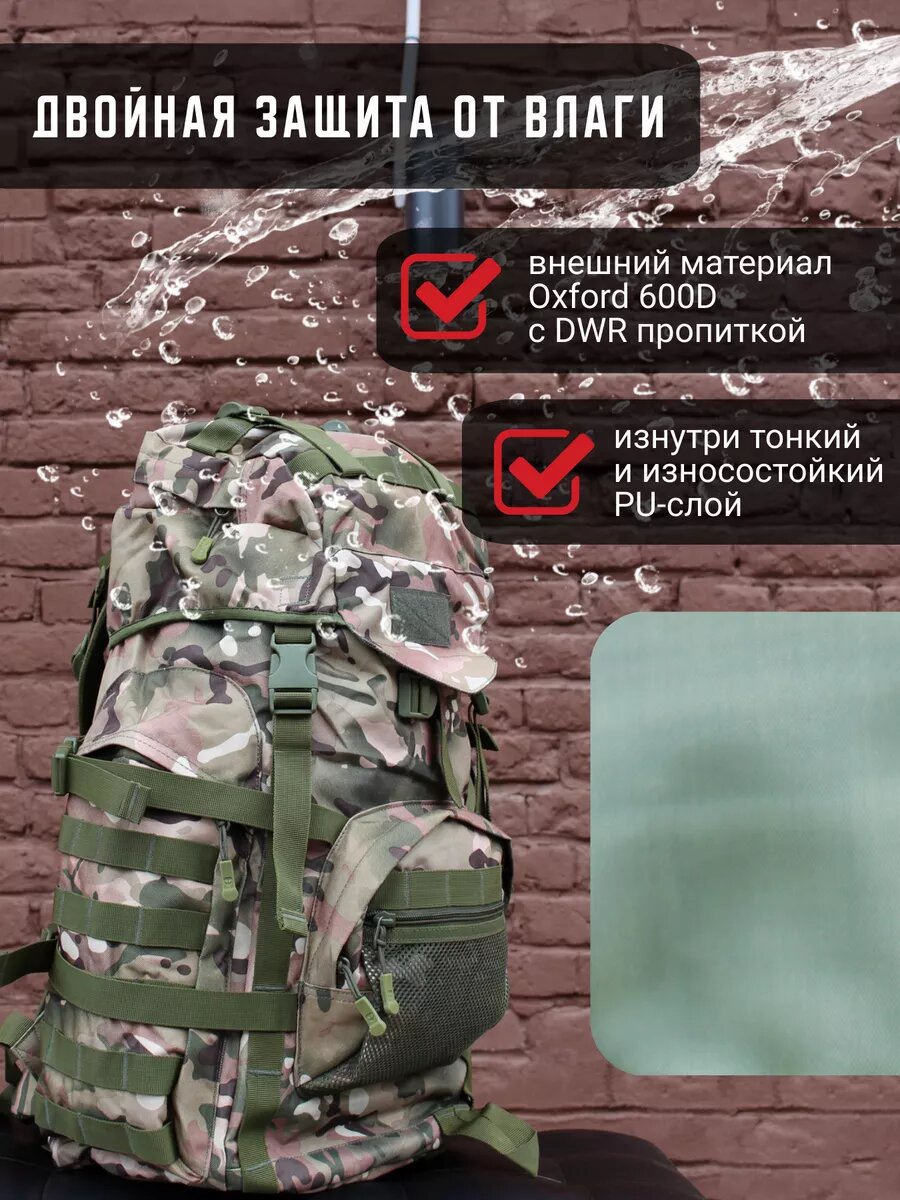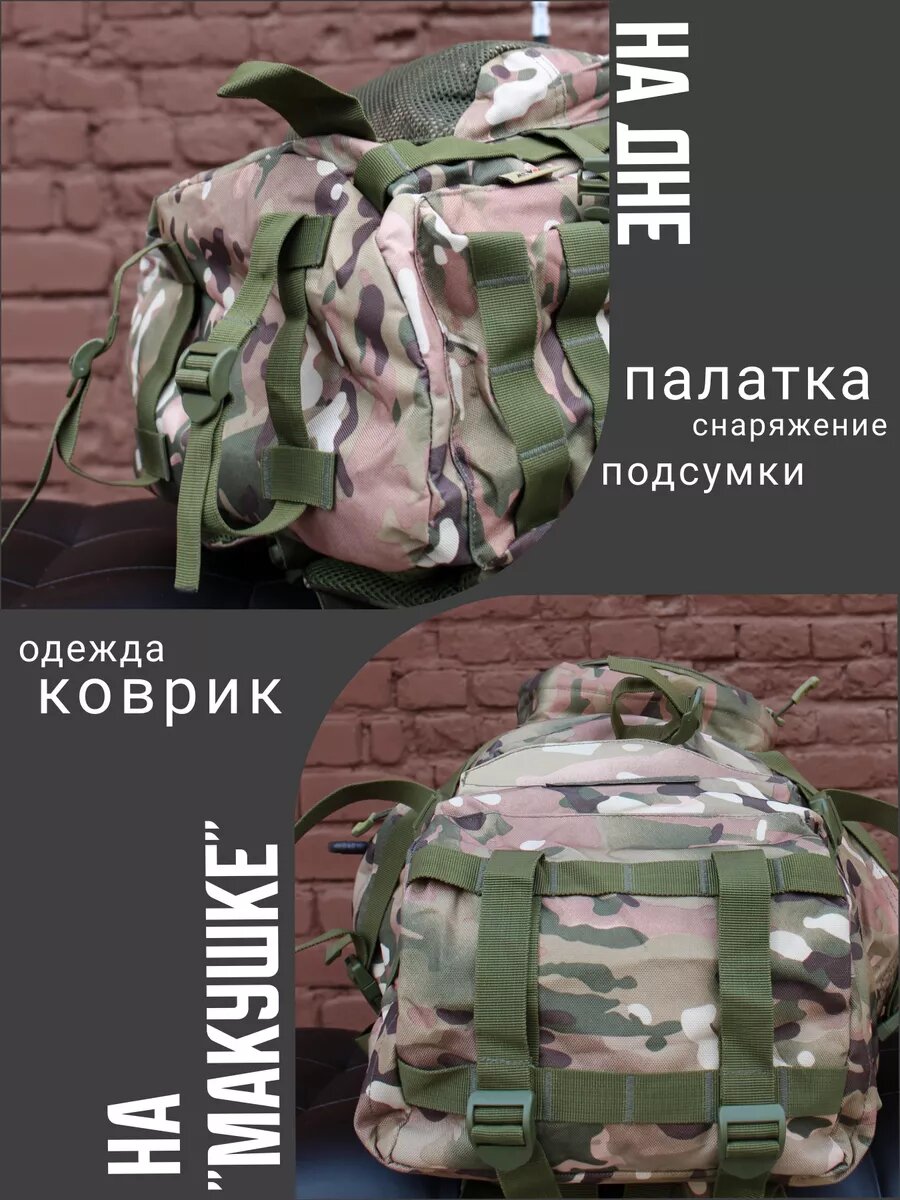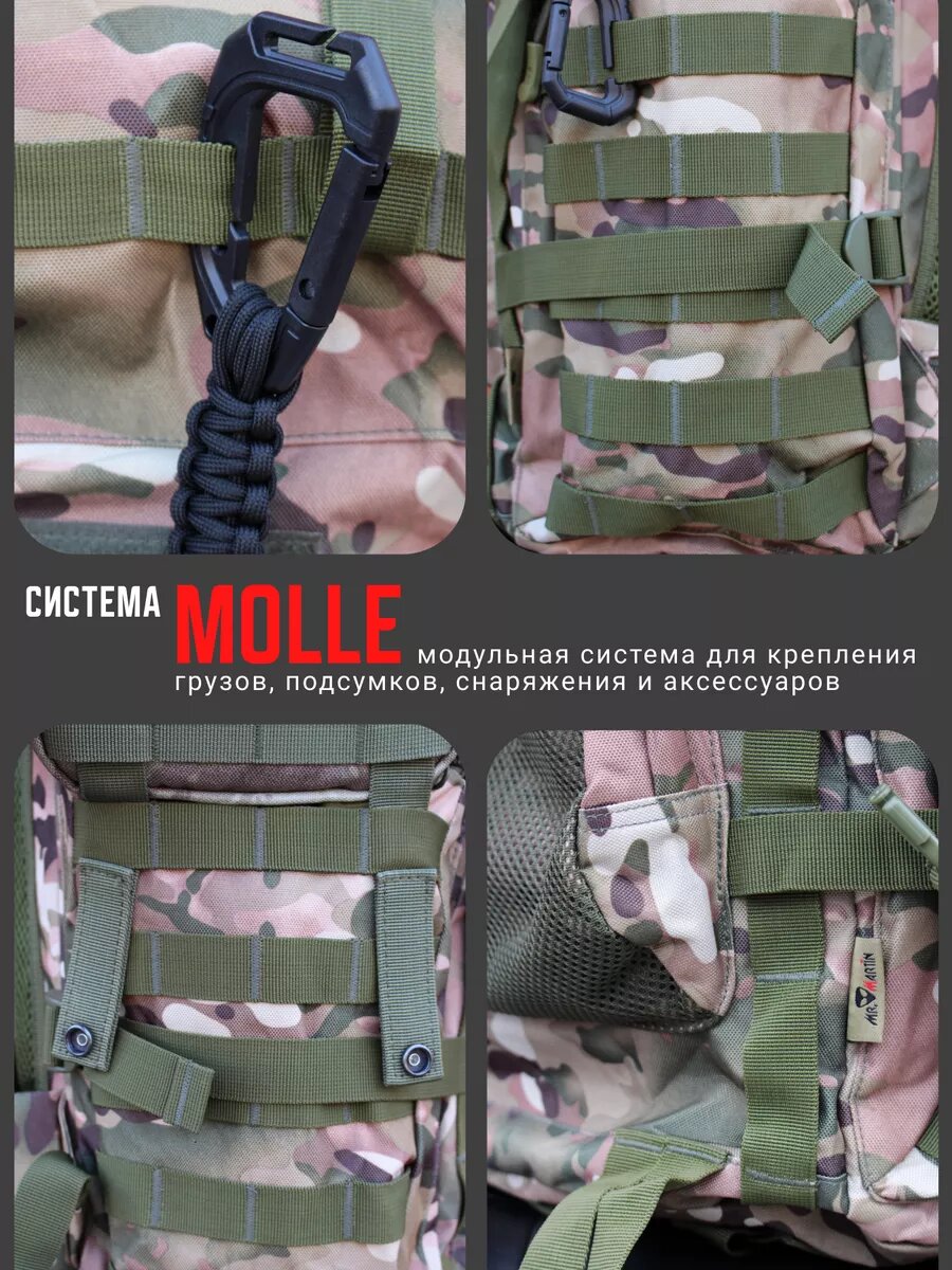 Модульная система внешнего крепления MOLLE позволит снарядить туристический рукзак (например: карабин, подсумок, палатка, коврик или др. охотничий или рыбацкий набор принадлежностей).