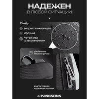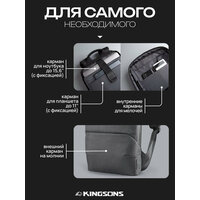 На внешней стороне рюкзака Kingsons расположены дополнительные места для хранения вещей: карман на молнии спереди и открытые мини-карманы на лямках. Большое количество внутренних и внешних карманов позволяет организовать хранение вещей таким образом, чтобы они были надежно защищены, но при этом оставались легкодоступными.