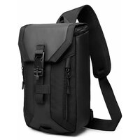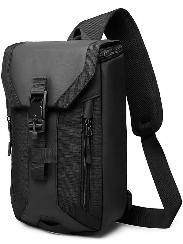 Купить Рюкзак мужской городской через плечо Ozuko небольшой 7л, для планшета 9.7″, черный, с USB портом, влагостойкий, тканевый, молодежный с доставкой по всей России.