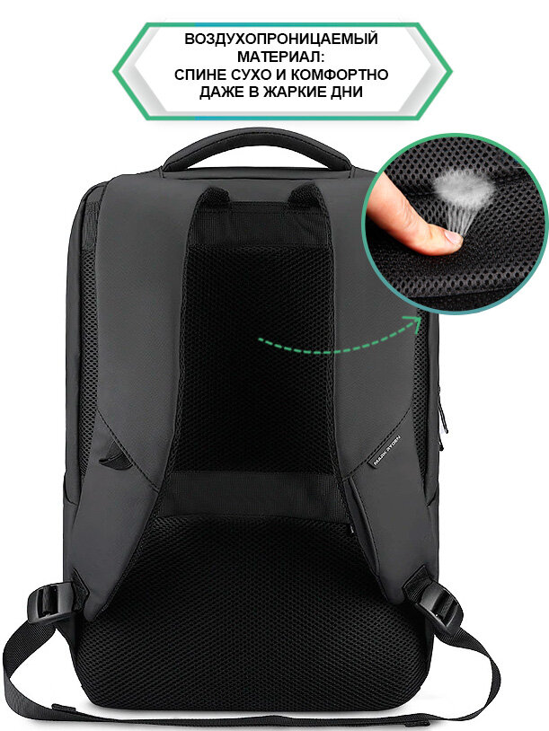 Купить Рюкзак мужской городской дорожный 16л для ноутбука 15.6″, планшета Mark Ryden водонепроницаемый, для взрослых и подростков, цвет черный с доставкой по всей России.
