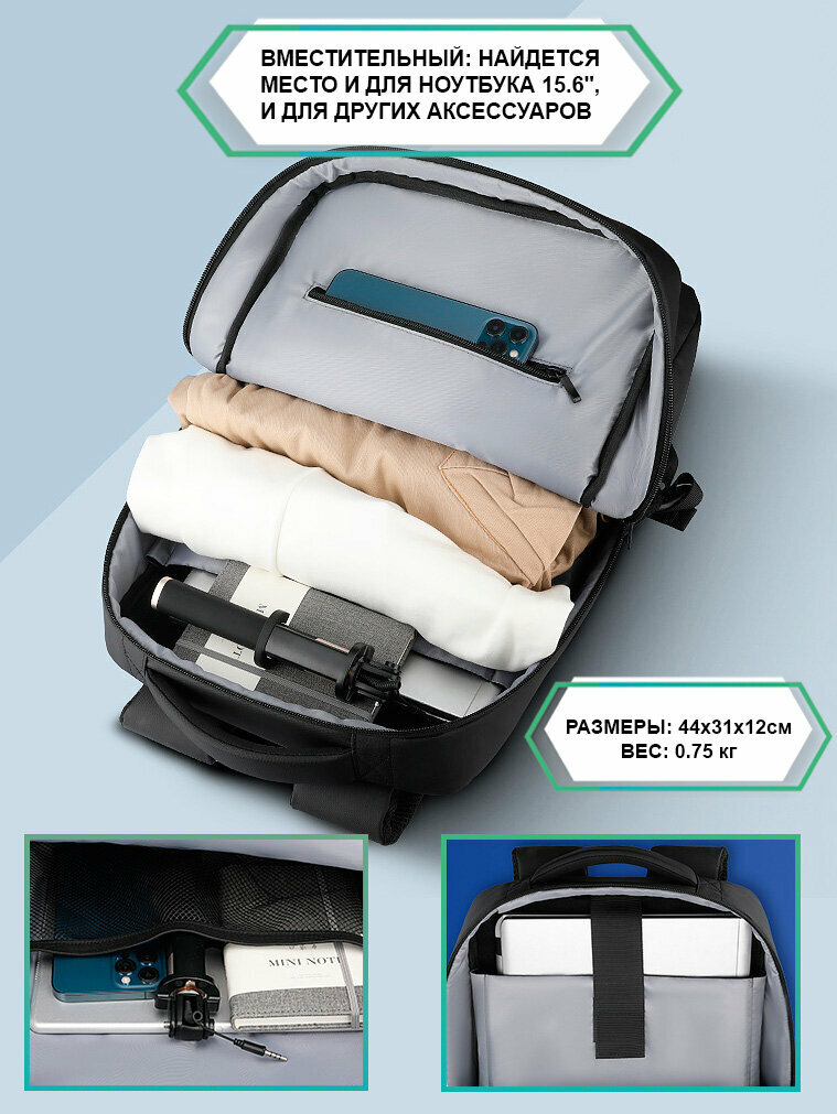 Рюкзак мужской городской дорожный 16л для ноутбука 15.6″, планшета Mark Ryden водонепроницаемый, для взрослых и подростков, цвет черный: сравнение цен, характеристики, фото, актуальное наличие и цены.