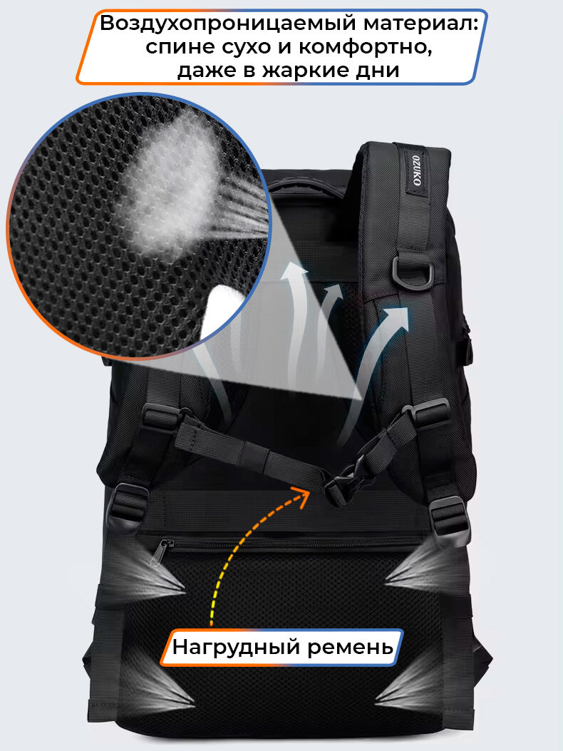 Купить Рюкзак мужской городской дорожный Ozuko большой 30л, для ноутбука 17.3″, непромокаемый, с потайным карманом, взрослый/подростковый, цвет черный с доставкой по всей России.