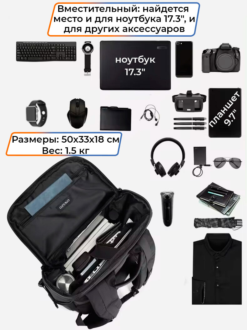 Рюкзак мужской городской дорожный Ozuko большой 30л, для ноутбука 17.3″, непромокаемый, с потайным карманом, взрослый/подростковый, цвет черный: сравнение цен, характеристики, фото, актуальное наличие и цены.