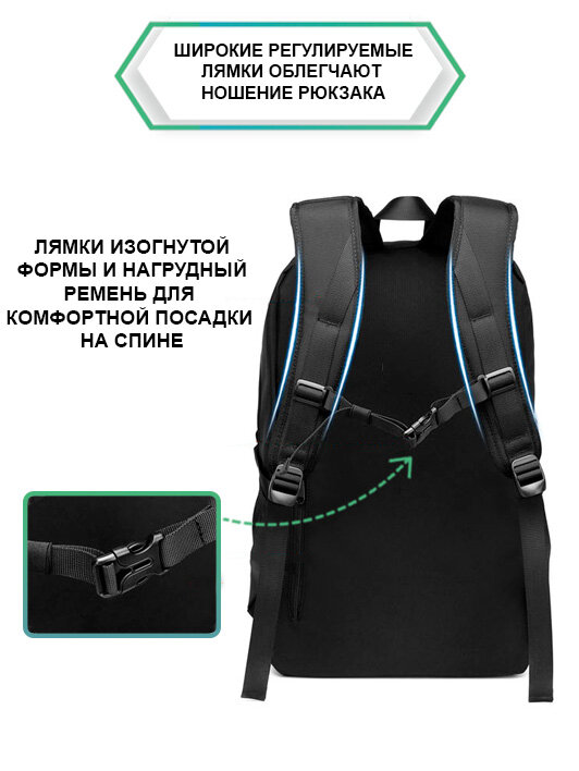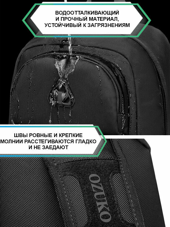Купить Рюкзак мужской городской дорожный Ozuko средний 17л, для ноутбука 17″ и планшета, непромокаемый, взрослый/подростковый, цвет черный с доставкой по всей России.