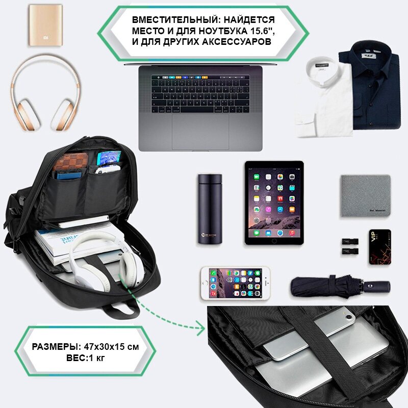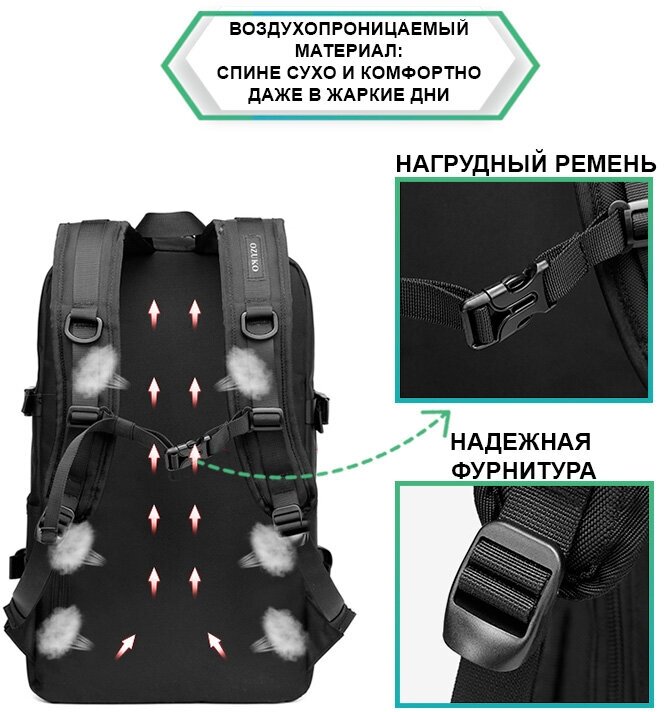 Рюкзак мужской городской дорожный Ozuko универсальный 21л, для ноутбука 15.6″ и планшета, непромокаемый, цвет черный: сравнение цен, характеристики, фото, актуальное наличие и цены.