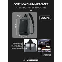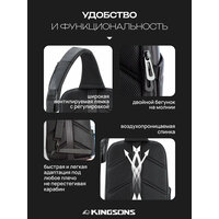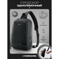 Купить Рюкзак мужской городской однолямочный через плечо 8л KINGSONS водонепроницаемый, с USB, взрослый/молодежный, цвет черный с доставкой по всей России.