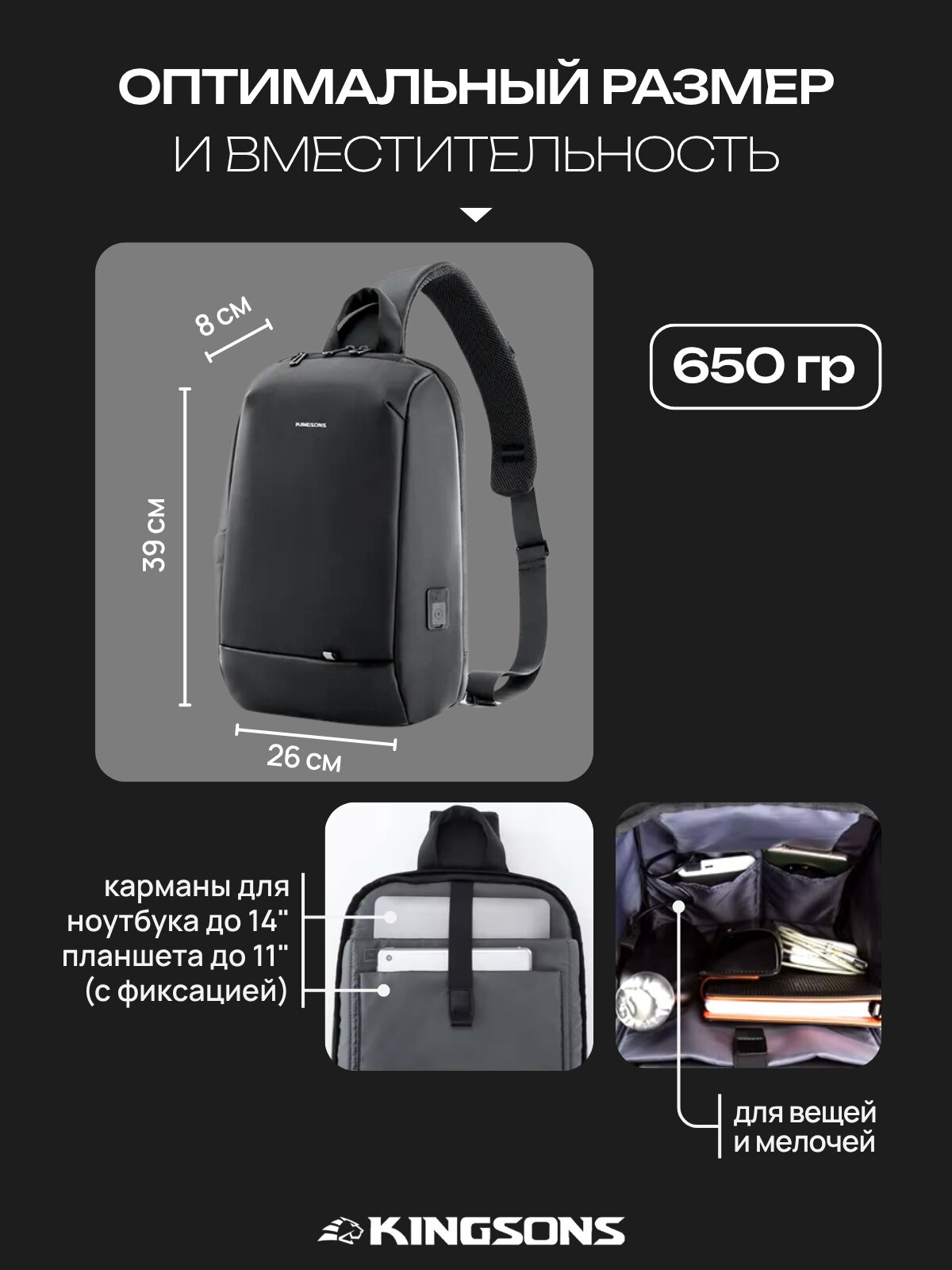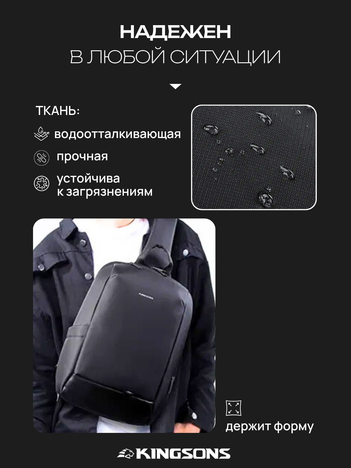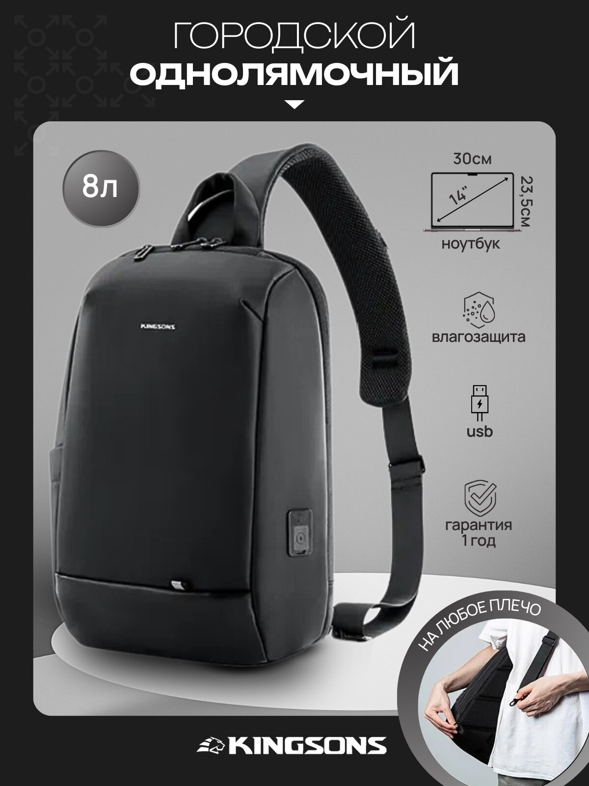 Рюкзак мужской городской однолямочный через плечо 8л KINGSONS водонепроницаемый, с USB, взрослый/молодежный, цвет черный: сравнение цен, характеристики, фото, актуальное наличие и цены.
