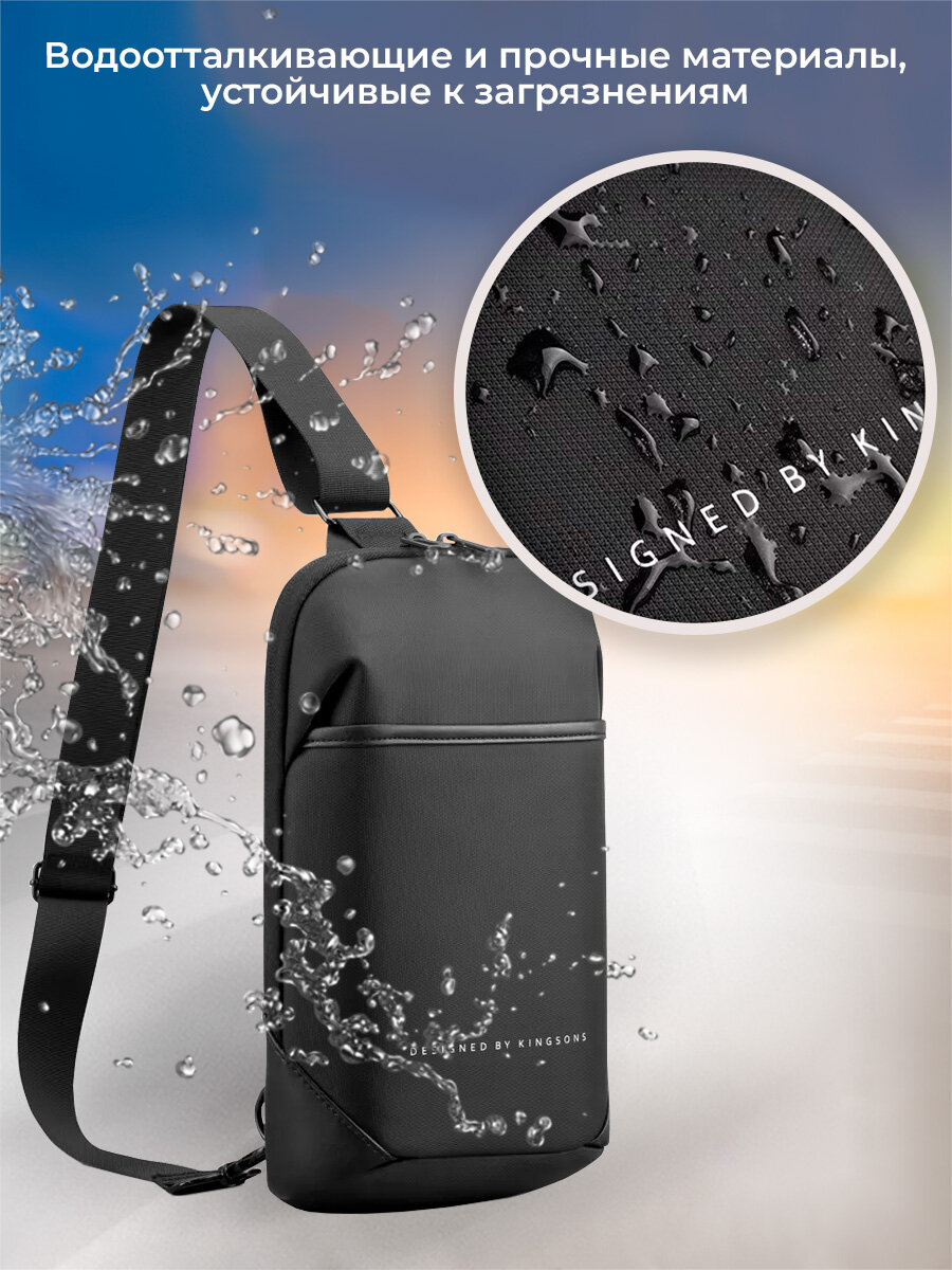 Купить Рюкзак мужской городской однолямочный через плечо KINGSONS маленький 4л, водонепроницаемый, взрослый/молодежный, черный с доставкой по всей России.