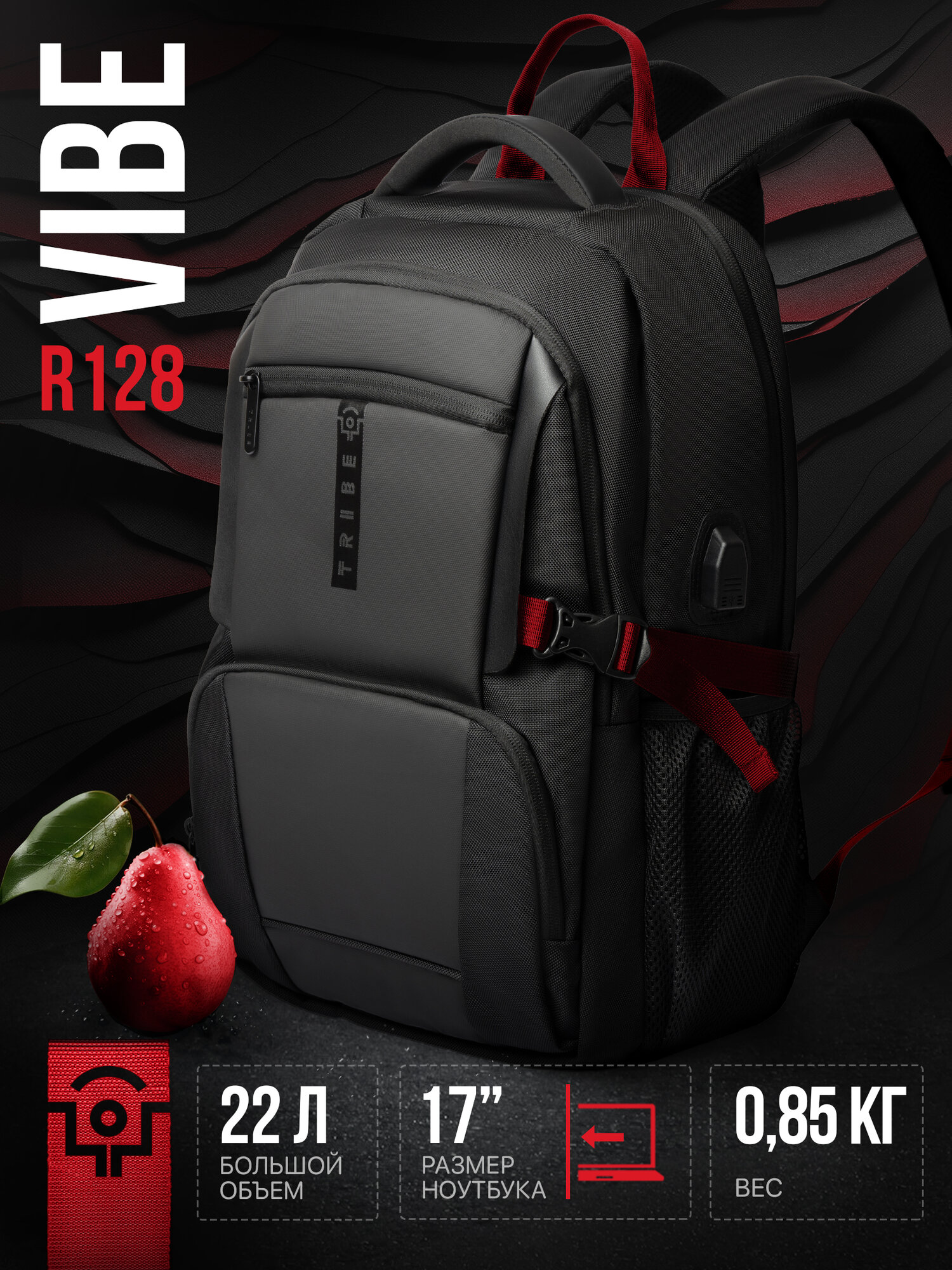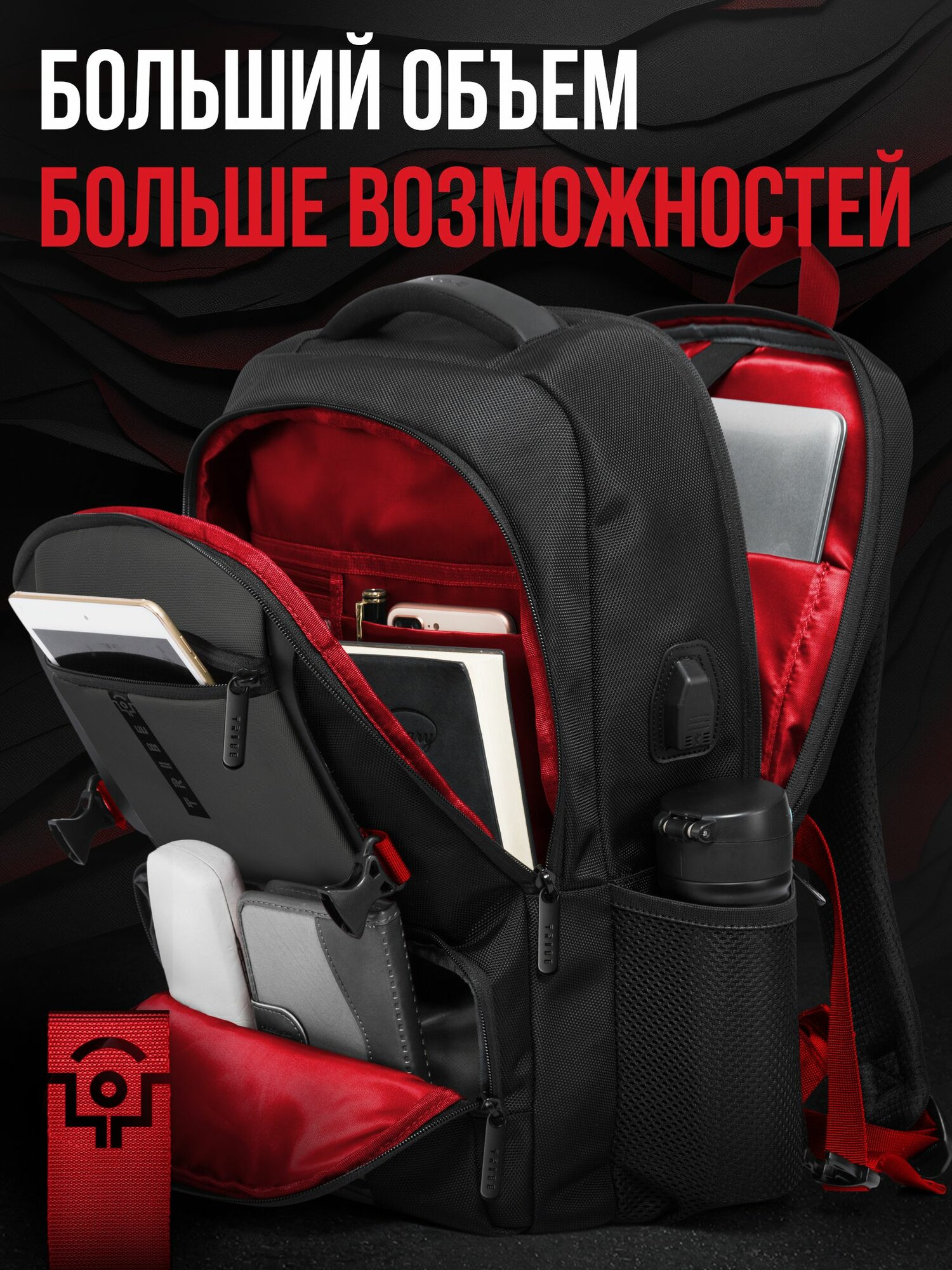Рюкзак мужской Tribe Vibe вместит в себя все необходимое, как для работы, учебы или прогулки, так и для длительного путешествия. Объемные вещи, такие как одежда, обувь, мобильные и компьютерные гаджеты и аксессуары, смогут разместиться в основном отсеке, защищенном от ударов мягкой спинкой рюкзака.