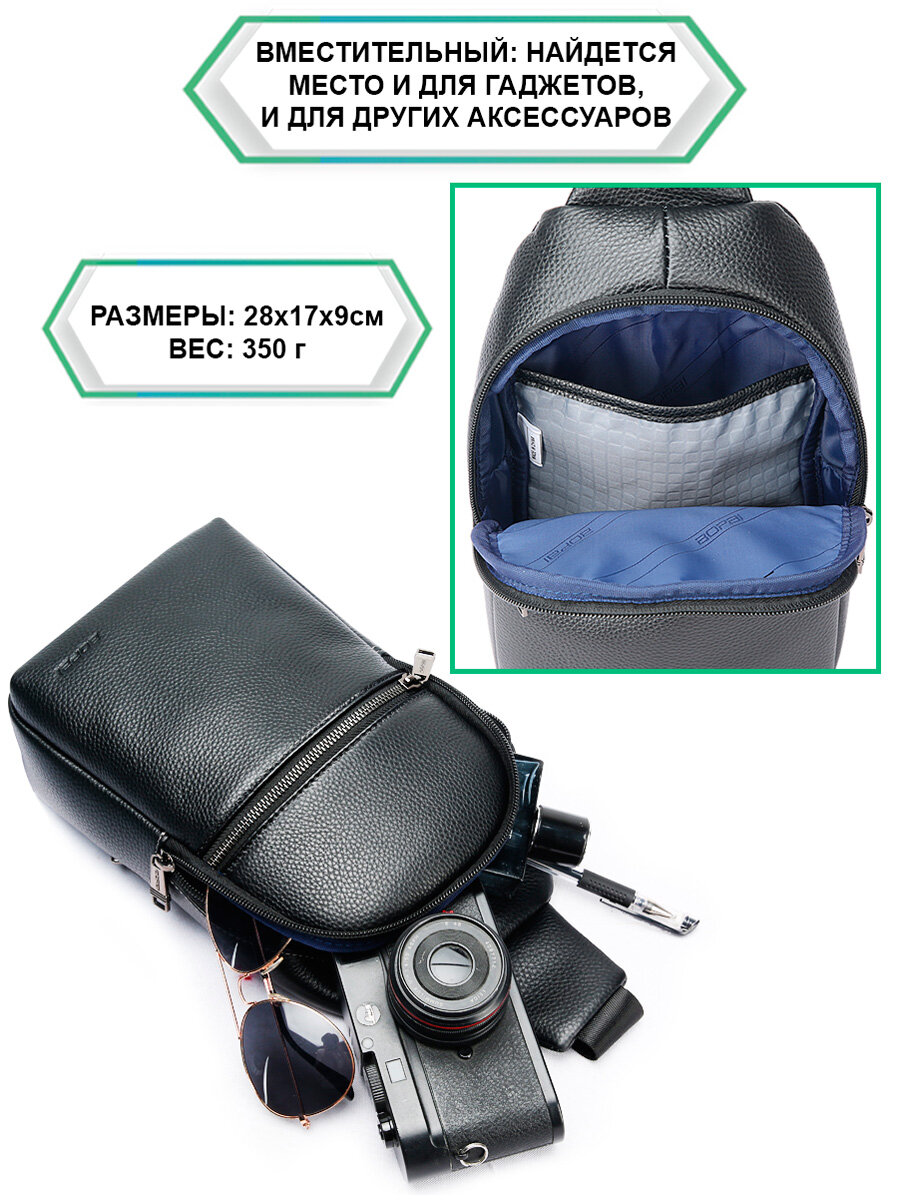 Рюкзак мужской кожаный городской однолямочный через плечо Bopai 4л, водонепроницаемый, взрослый/молодежный, черный: сравнение цен, характеристики, фото, актуальное наличие и цены.