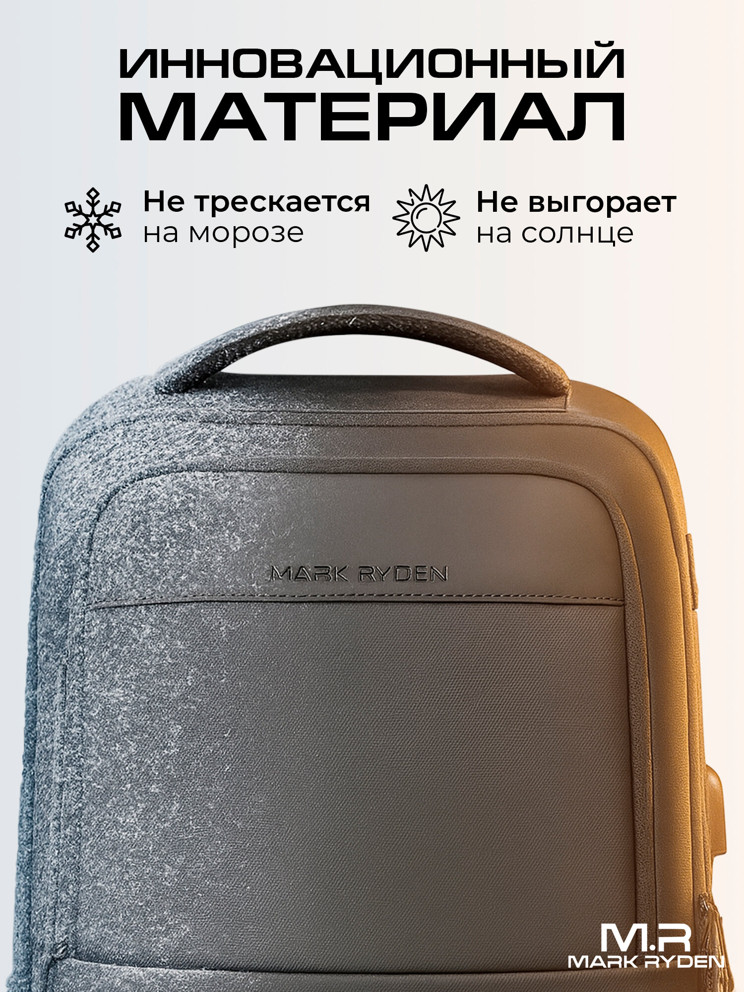 Рюкзак городской от бренда Mark Ryden изготовлен из высокопрочного материала OXFORD, разработанного по специальной технологии. Он устойчив к воздействию влаги и грязи и обеспечивает сохранность ваших вещей от намокания. Теперь Вам не страшны ни дождь, ни снег, ни даже пролитая чашка кофе.