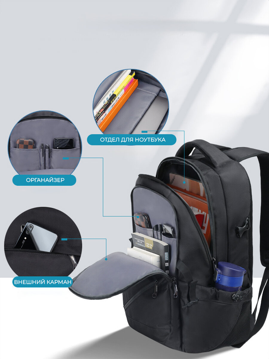 Вместительность и функциональность рюкзака Snoburg SN9910 поражает. В нем есть все необходимое для комфортной повседневной жизни: отделение для ноутбука, карман для планшета, органайзер и множество боковых карманов.