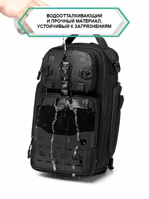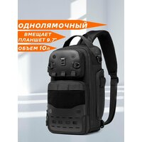 Купить Рюкзак мужской спортивный однолямочный через плечо Ozuko средний 10л, для планшета 9.7″, непромокаемый, взрослый/подростковый, цвет черный-ROMIKY с доставкой по всей России.