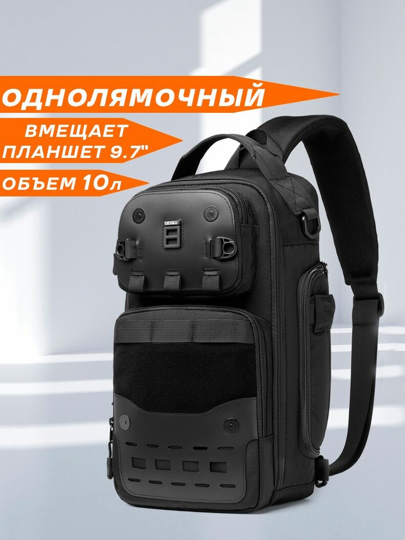 Рюкзак мужской спортивный однолямочный через плечо Ozuko средний 10л, для планшета 9.7″, непромокаемый, взрослый/подростковый, цвет черный-ROMIKY: сравнение цен, характеристики, фото, актуальное наличие и цены.