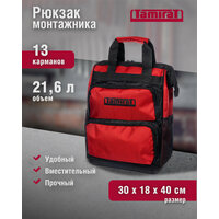 Рюкзак для инструментов с пластиковым дном Строительные сумки Tamirat идеально подходят для переноски ручного инструмента, оборудования и строительных принадлежностей, средств индивидуальной защиты. Незаменимы для безопасной и комфортной работы мастера - строителя, монтажника электрика, электромонтажника, кабельщика и т. д. Рюкзак также можно использовать для организации рабочего пространства и разместить весь ваш строительный или электроинструмент в гараже, на балконе или в автомобиле Размер рюкзака на 21,6 литра - 30 х 18 х 40 см. Максимальный рекомендуемый вес - 25 кг. Выполнен из износостойкого водоотталкивающего материала Oxford 600D с ПВХ-пропиткой. Ударопрочное пластиковое дно надежно защищает инструмент и монтажные принадлежности от влаги, грязи и механических повреждений. Благодаря вместительному отделению и карманам (13 штук), все необходимые инструменты всегда будут в порядке и под рукой, будь то на стройке, мастерской или в багажнике машины. Рюкзак имеет эргономичную накладку на спинке, а также мягкие регулируемые лямки, что обеспечивает равномерное распределение нагрузки в процессе ношения. Универсальная конструкция изделия позволяет носить рюкзак не только на плечах, но и за ручки как сумку. На ручках предусмотрен мягкий холдер на «липучке» для комфортного ношения.