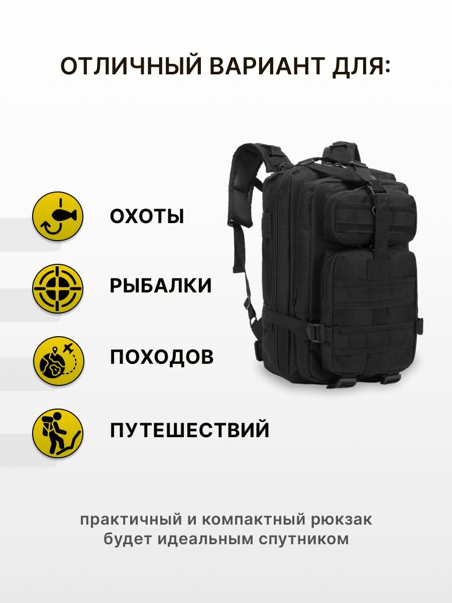 Мужской туристический рюкзак предназначенный специально для активного отдыха, туризма и рыбалки. Изготовленный из прочного тканевого материала, этот портфель обладает превосходной прочностью и долговечностью, выдерживая длительные периоды использования. Большой размер походного рюкзака позволяет легко упаковать все необходимые вещи. Он оснащен многочисленными карманами и отделениями, обеспечивая удобное хранение и простой доступ к вещам, что делает его идеальным выбором для длительных походов. Чёрный цвет рюкзака придает ему стильный и городской вид, не привлекая сильно внимание и подходя к различным образам. Благодаря своему спортивному дизайну, портфель легко дополнит вашу городскую обувь и одежду. Спортивный рюкзак - это идеальный выбор для всех молодых мужчин, мальчиков, подростков, желающих провести время на свежем воздухе и наслаждаться активным образом жизни. Тактический рюкзак подойдет и тем людям , которым нужно удобно и эффективно разложить военные снаряжение, благодаря большому количеству карманов, креплений, стяжек и регулировок.