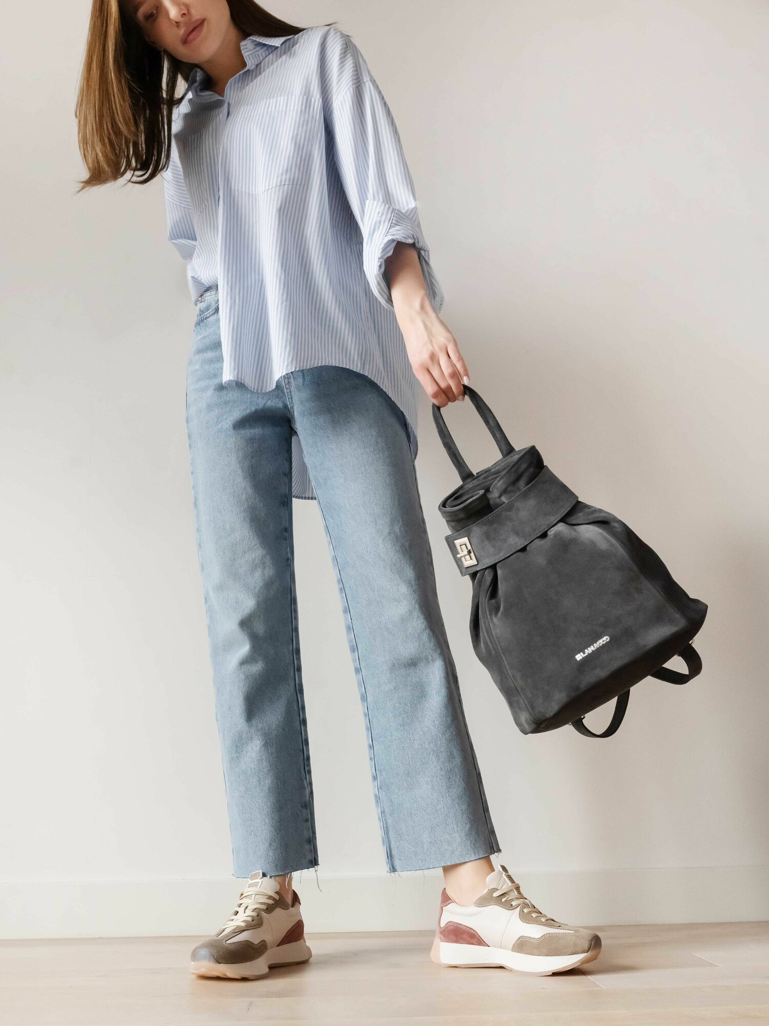 Рюкзак натуральная кожа городской повседневный замшевый , Lamacco , 9823L_Темно-серый