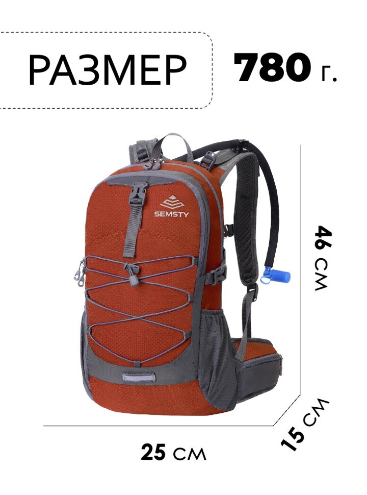 Лёгкий спортивный рюкзак с питьевой системой в комплекте и чехлом от дождя. Может использоваться как для небольших туристических походов, так и для катания на велосипеде. Есть удобный поясной ремень и крепеж для шлема. Спина мягкая с вентиляционными каналами. Широкий поясной ремень с карманами Питьевая система и термочехол. Чехол от дождя. Вес: 780 гр. Размеры: 46х25х15. Объем: 17 л.