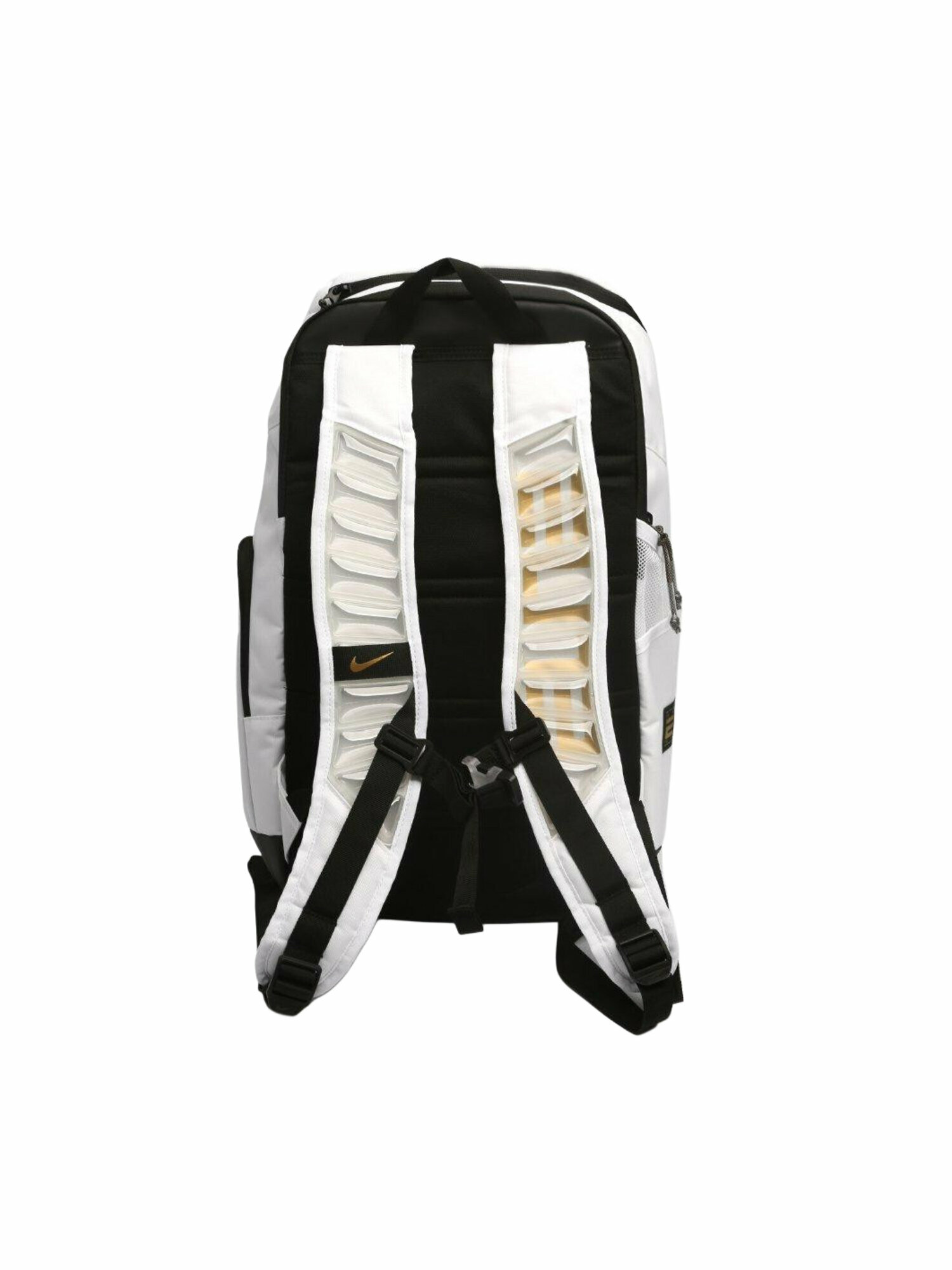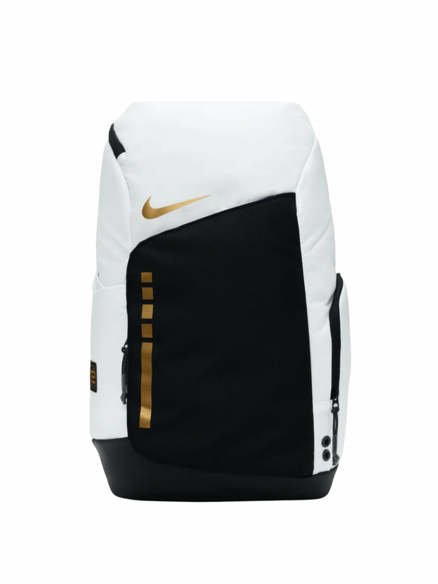 Рюкзак Nike Hoops Elite имеет яркий акцент в виде золотых элементов, что делает его стильным и заметным аксессуаром.